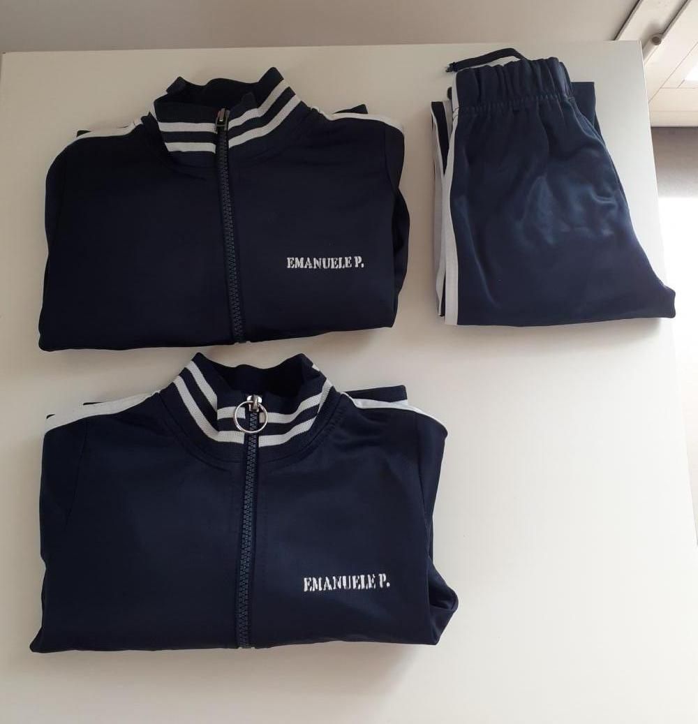 Descrizione:Tuta per scuola taglia 2 anni, tre pezzi 2 sopra+pantalone, le giacche hanno la tiralampo rotta ma la cerniera è ok, i pantaloni un po' più usurati al ginocchio cmq ancora in ottimo stato e sfruttabili