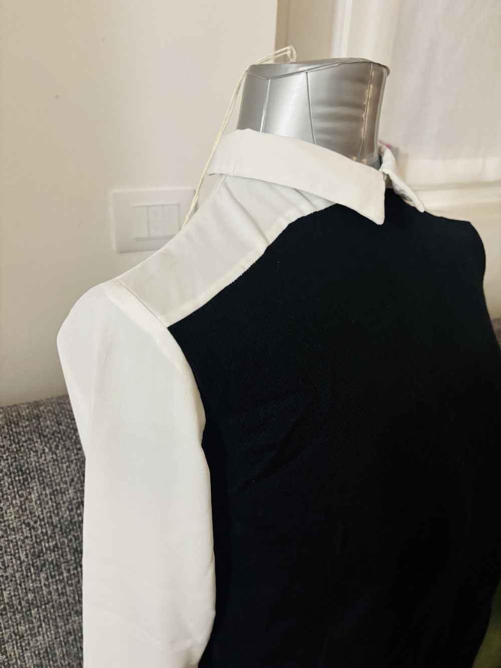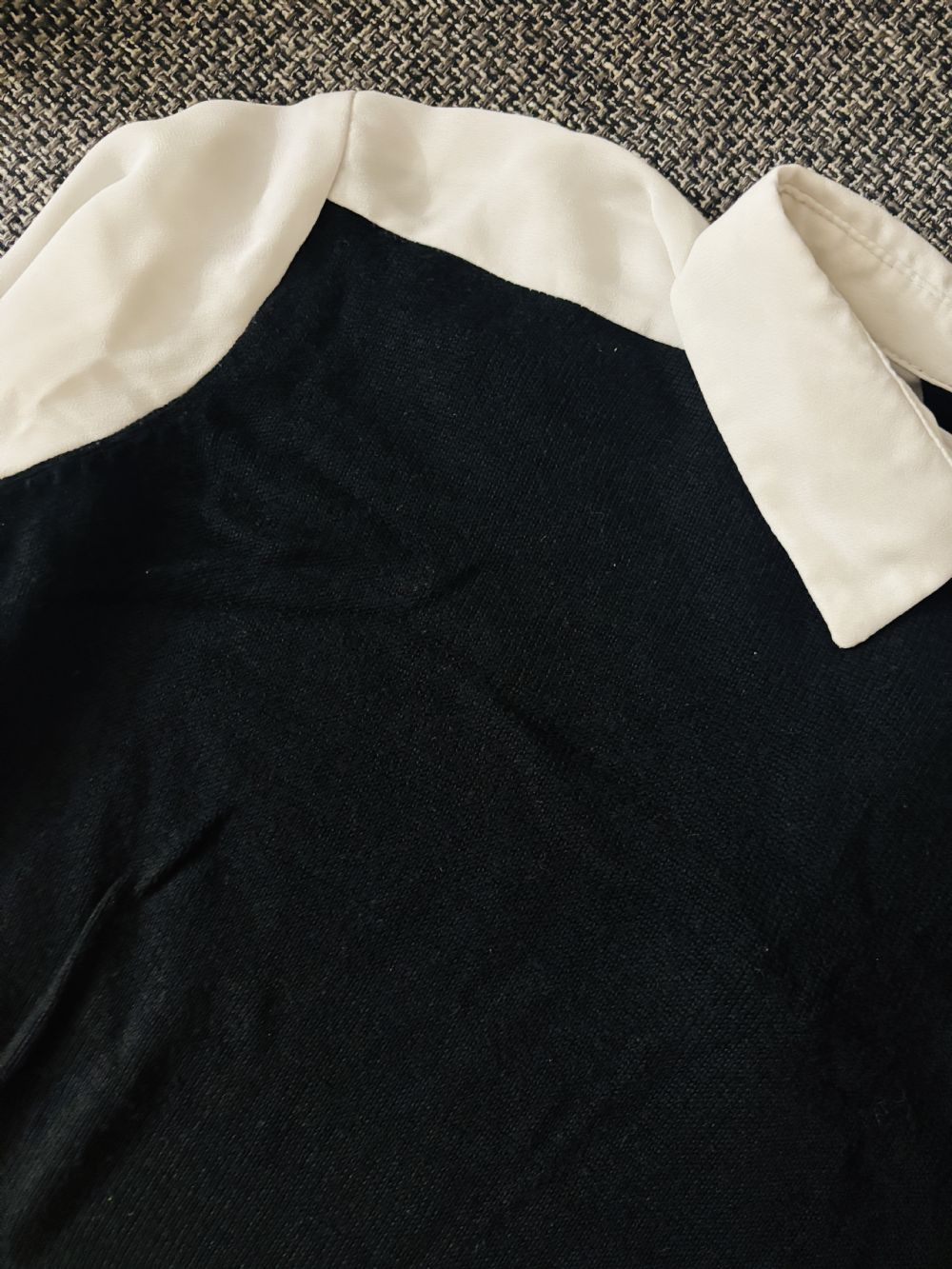 Descrizione:Bellissimo vestitino corto taglia 42 nero con maniche e colletto bianche