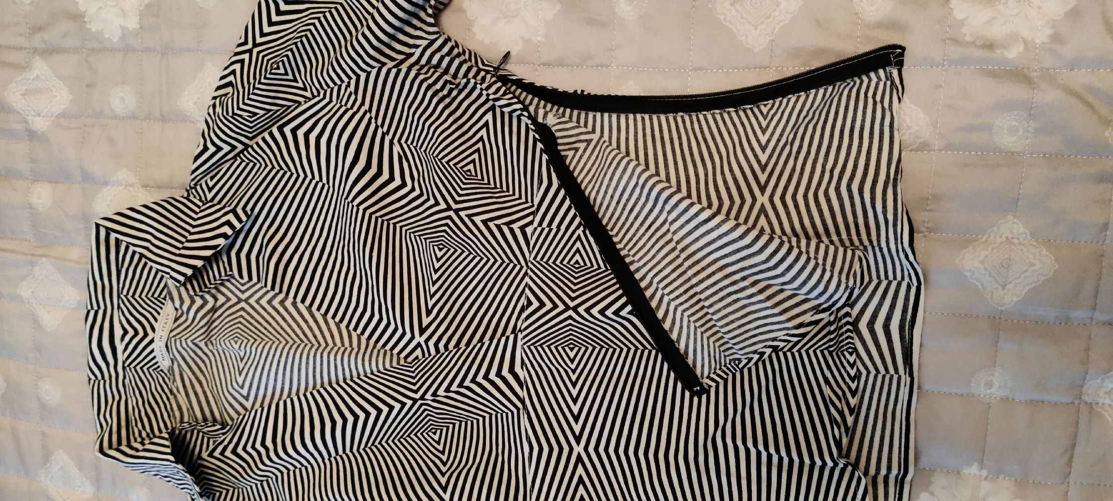 Misure da ascella ad ascella 42 cm, lunghezza 57cm, manica lunga 60 cm Apertura con cerniera su fianco sinistro
