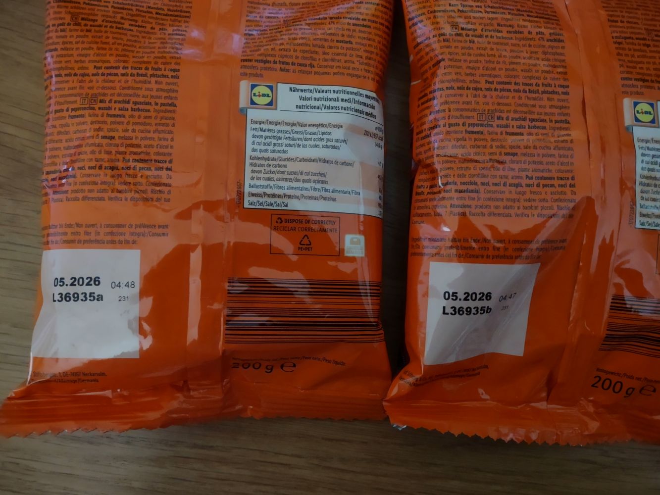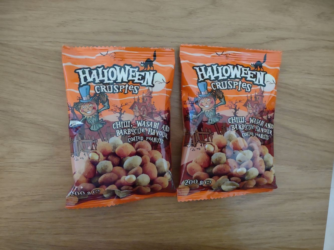 Descrizione:Due sacchetti di arachidi in pastella croccante mix gusti (chili, wasabi, barbecue).