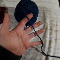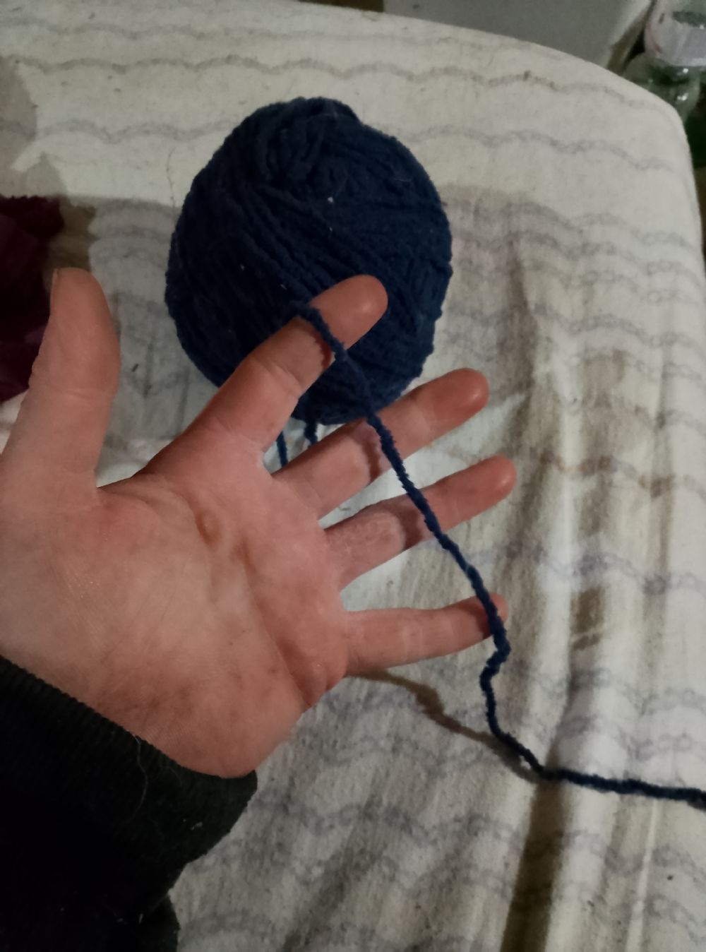 Descrizione:Gomitolo blu credo sintetico ma non ricordo di preciso