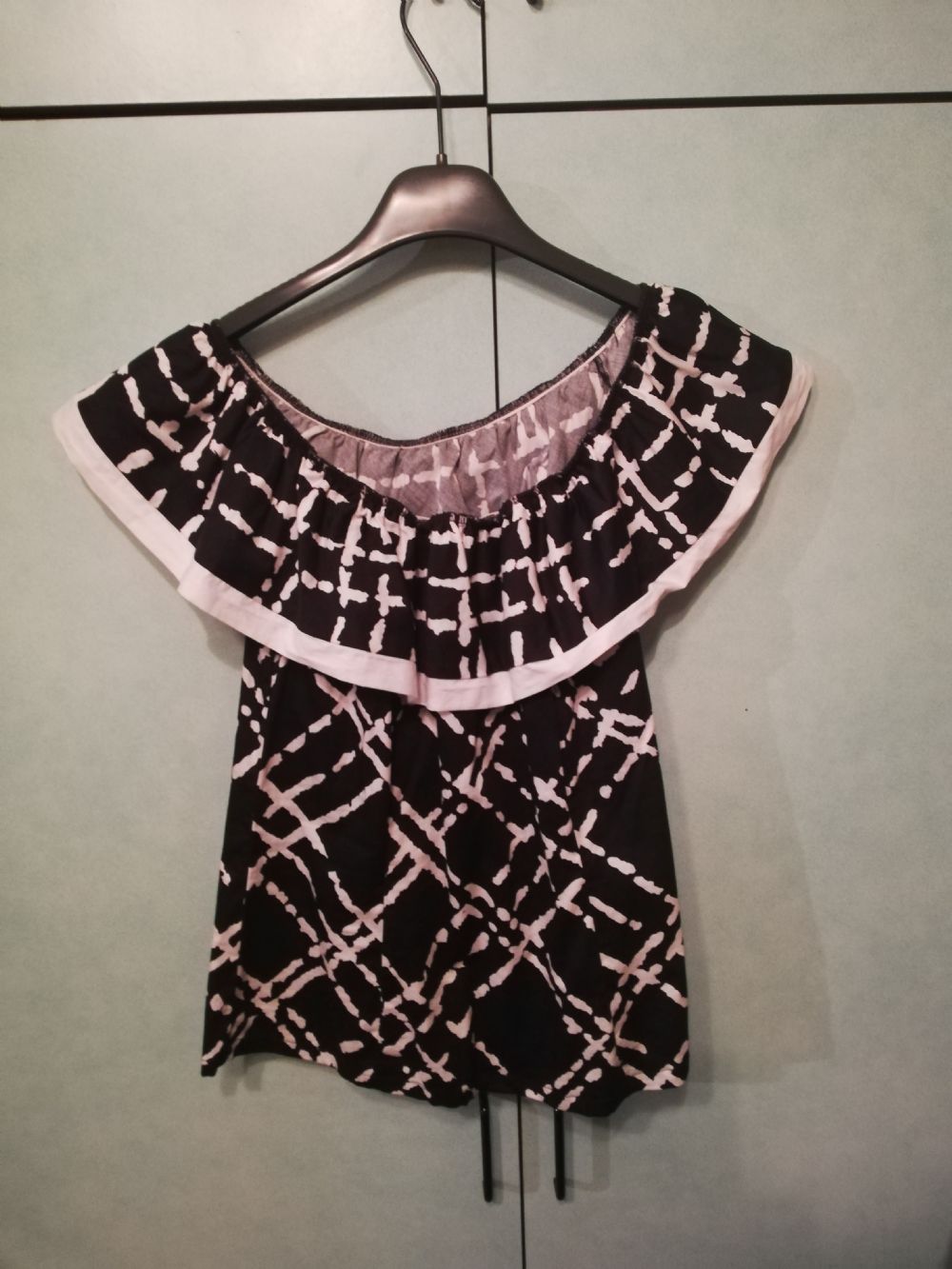 Blusa con scollo a barca bianca e nera in cotone marca nara camicia, taglia seconda cioè S.