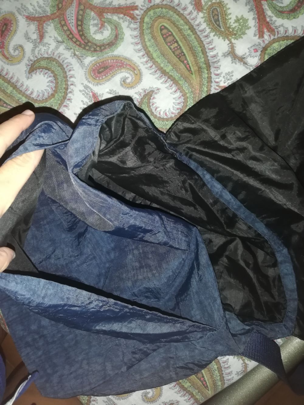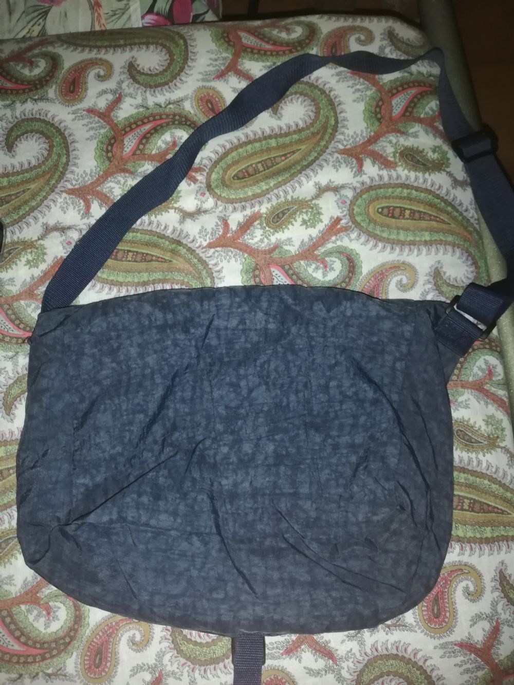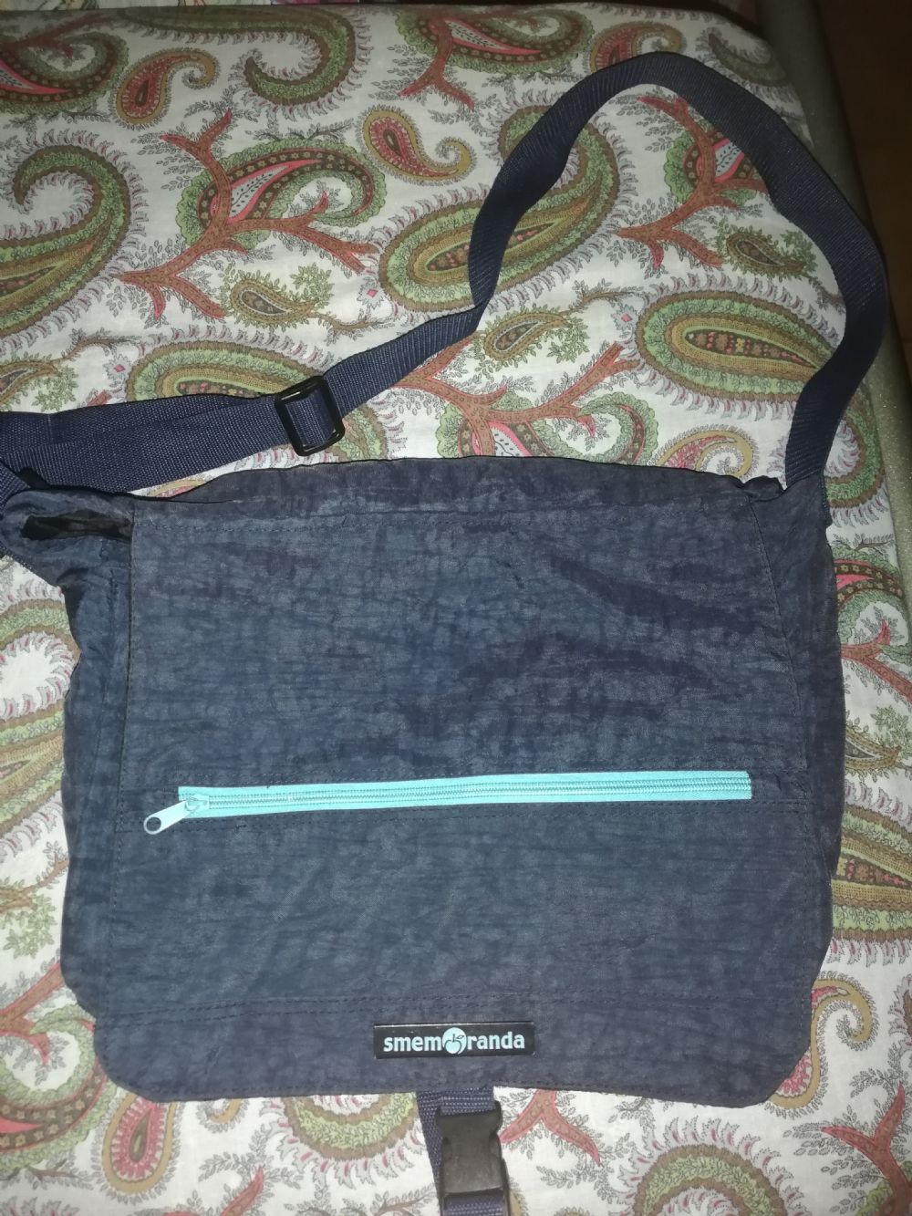 Descrizione:Borsa smemoranda blu con tracolla regolabile, all'interno è rivestita, tessuto morbido . 40 cm di larghezza e 35 cm di lunghezza circa. Una tasca davanti con la chiusura a zip e dentro è diviso in due parti, una più piccola e una più grande. Scambiata qui e usata poco.