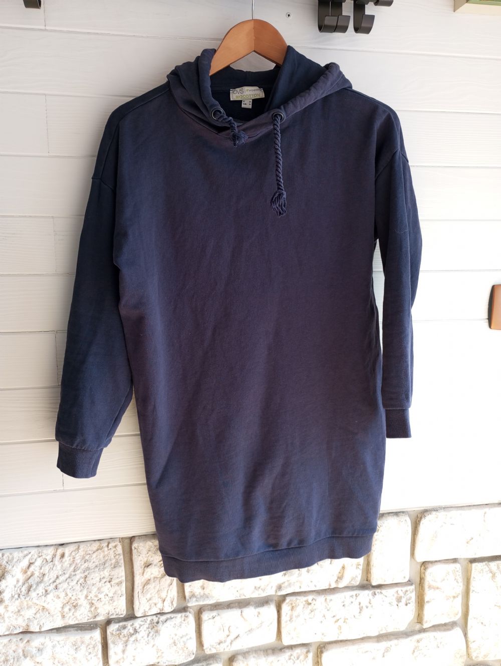 Descrizione:100 % cotone, senza tasche ma con cappuccio, taglia m.