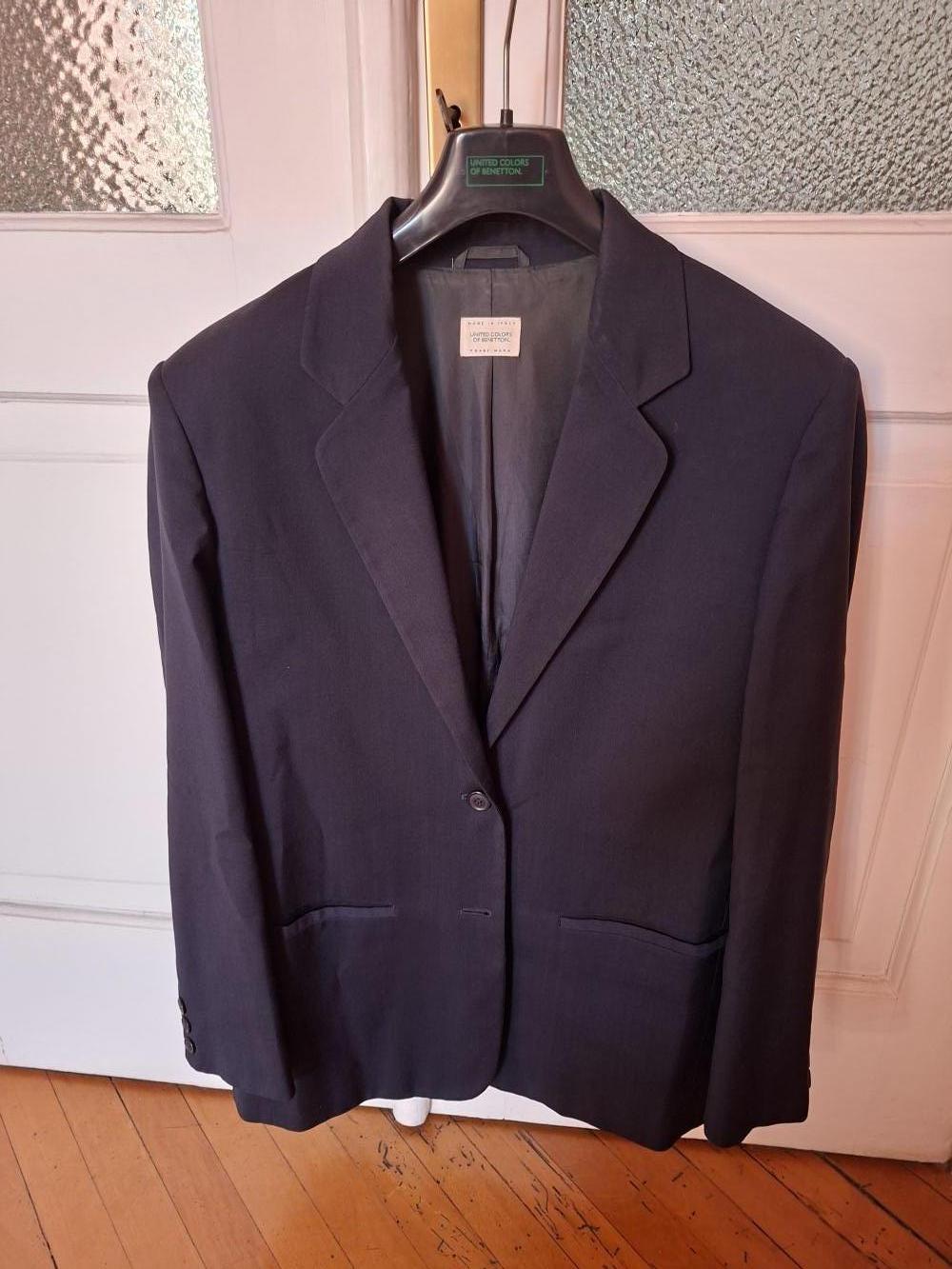 Descrizione:Bellissimo blazer blu scuro in pura lana vergine (fresco lana,simile al lino),tg 44,marca Benetton.