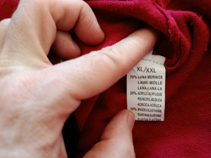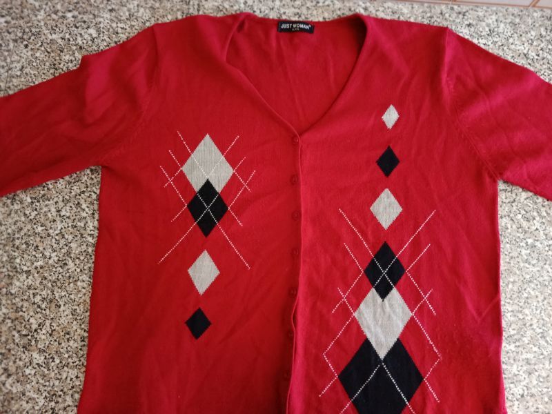 Maglione 70% lana merinos, 20% acrilico, 10% elastan. Taglia in una delle foto