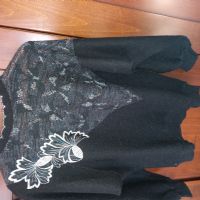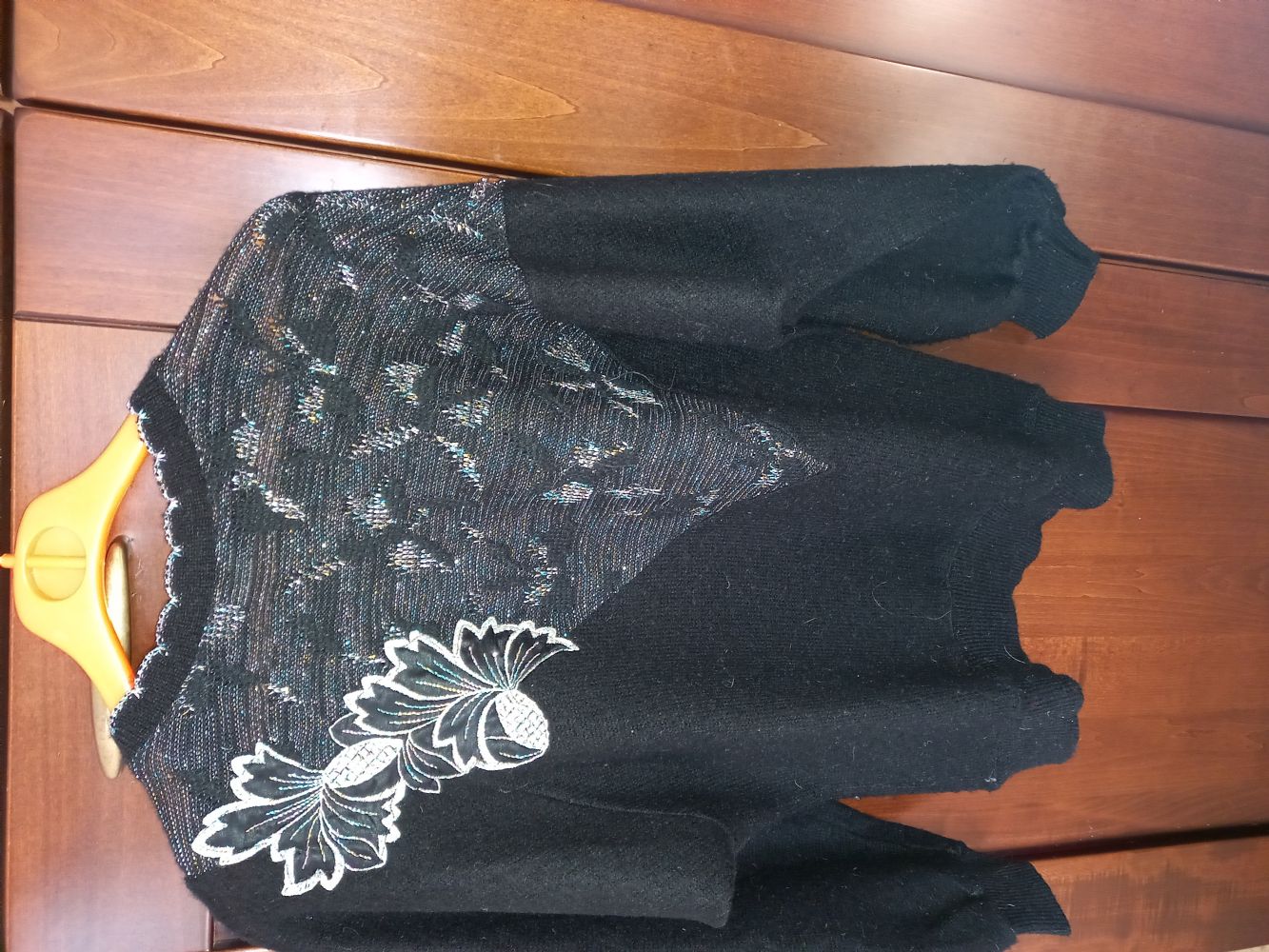 Descrizione:Maglione con inserti, in acrilico, larghezza spalle cm 33 torace 45, lunghezza maglione cm 62 circa