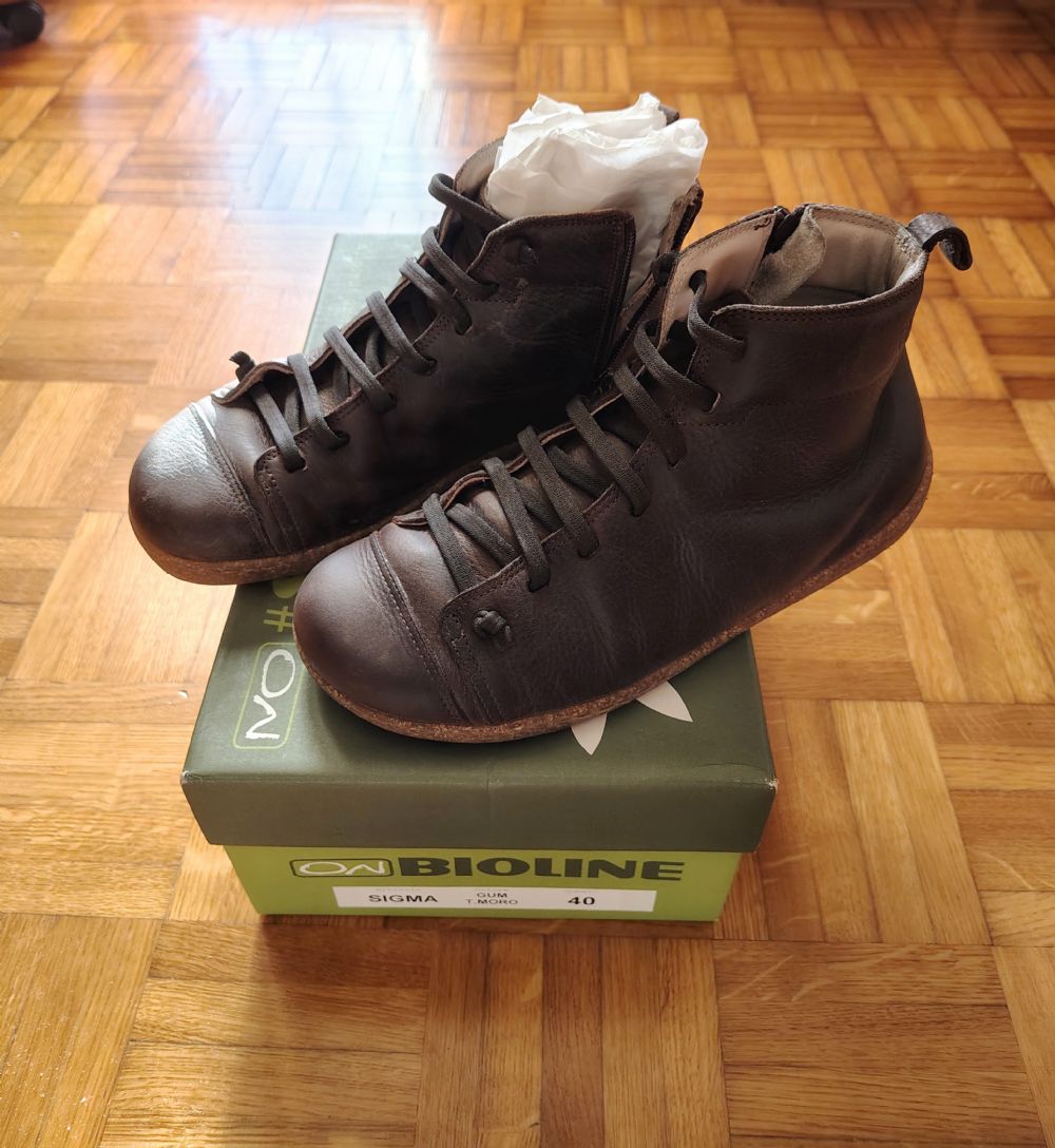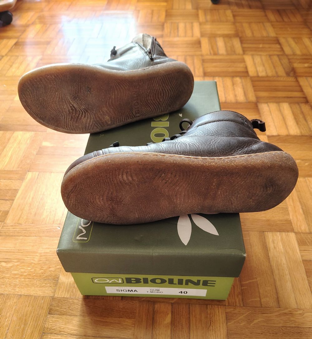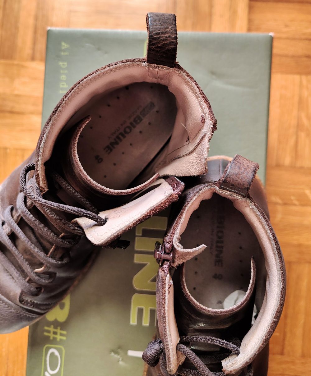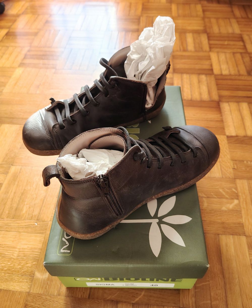 Scarponcino vera pelle color testa di moro, marca Bioline nr. 40 ma veste più un 39.