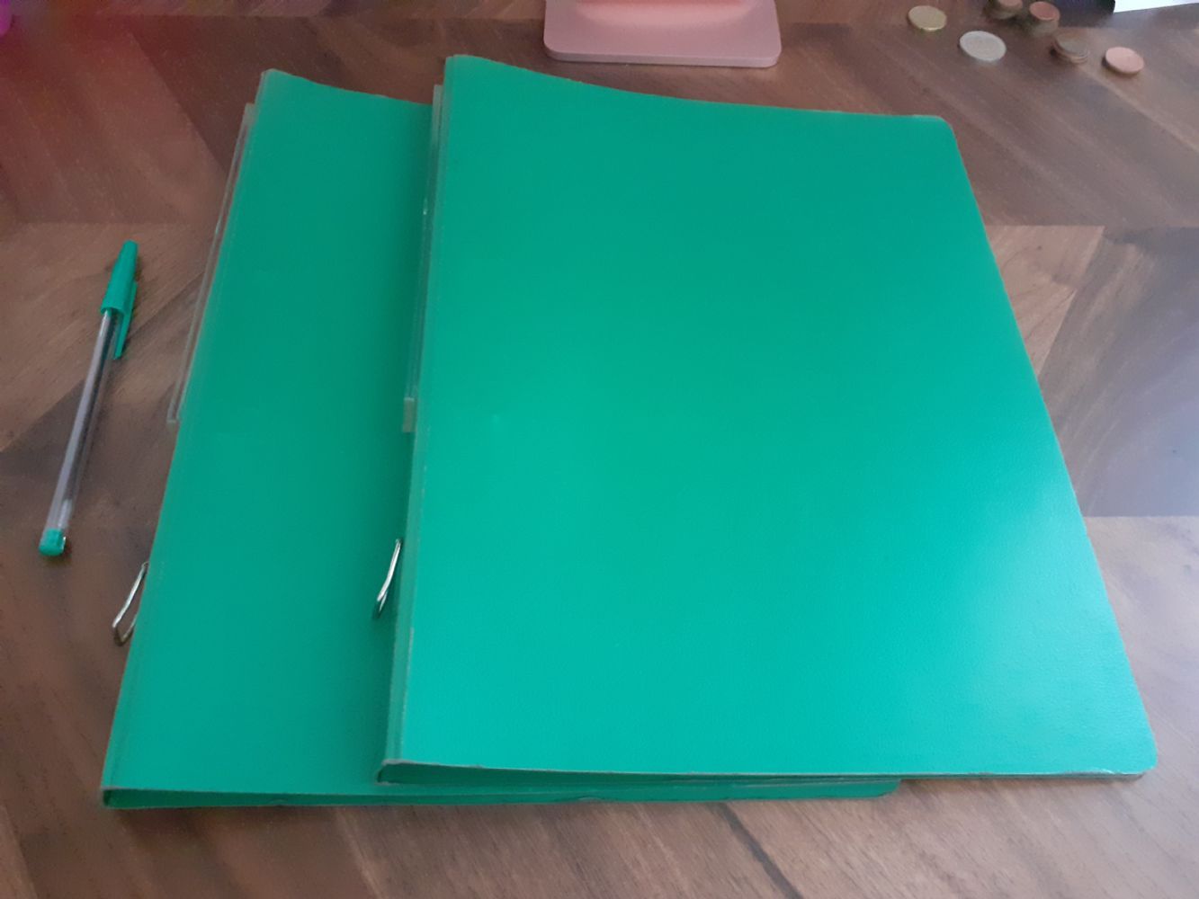 Descrizione: 2 cartelline portadocumenti copertina in cartone, sul dorso plastica per inserire etichetta, usate ma ancora sfruttabili