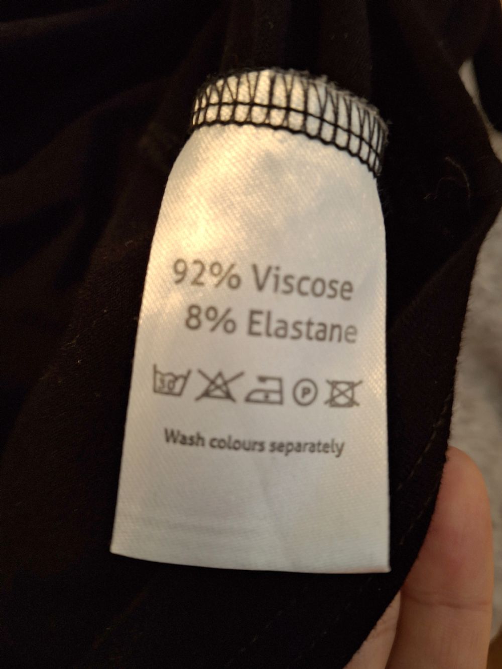Taglia XS, composizione 92% viscosa, 8% elastan.
