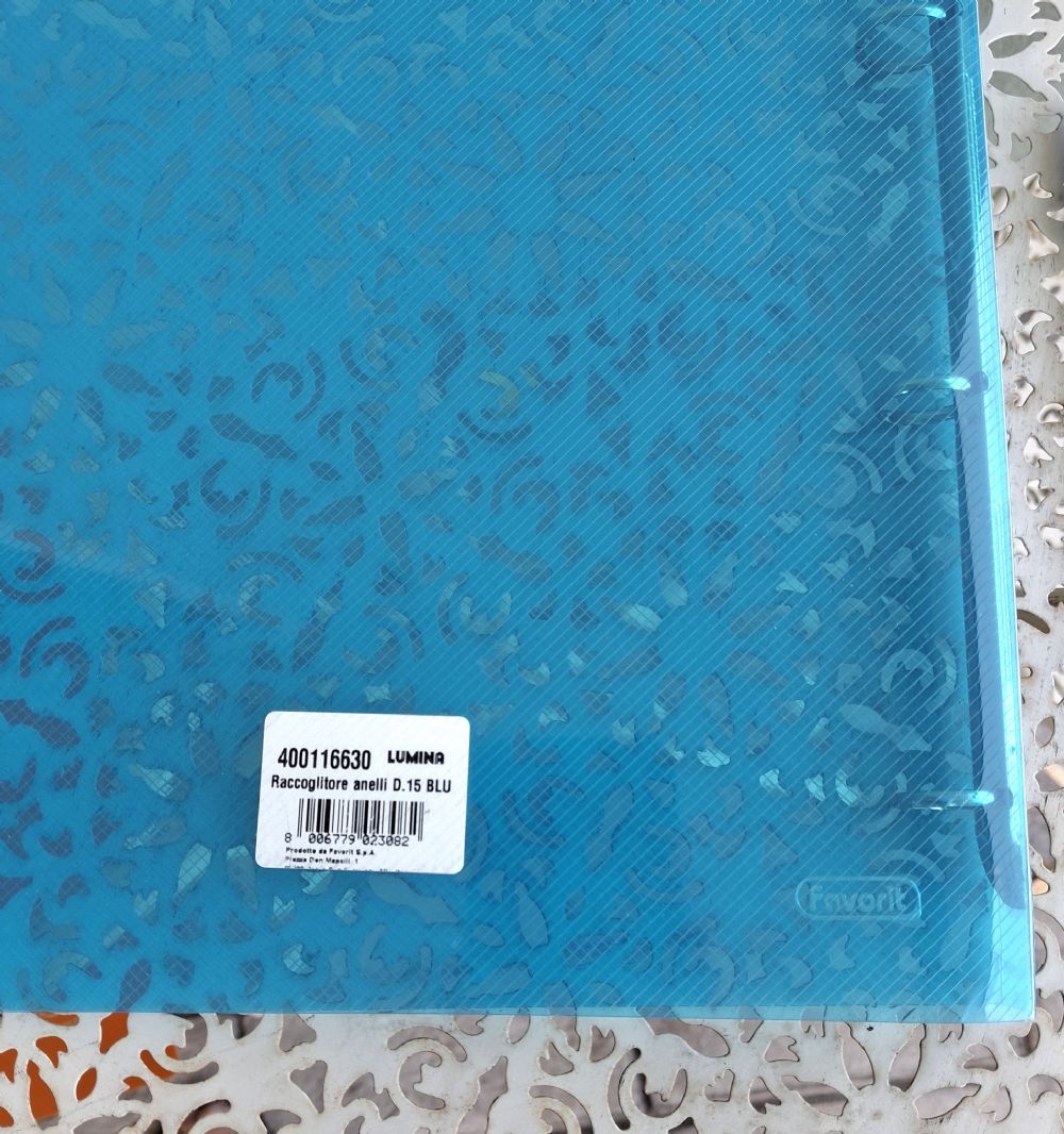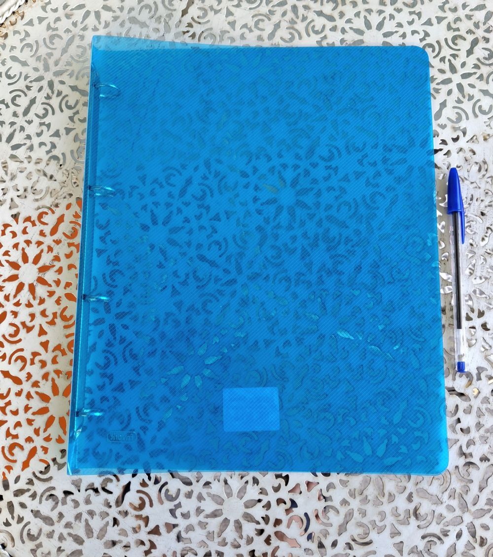 In robusta plastica semirigida, adatta per inserimento buste trasparenti formato A4 con fori.