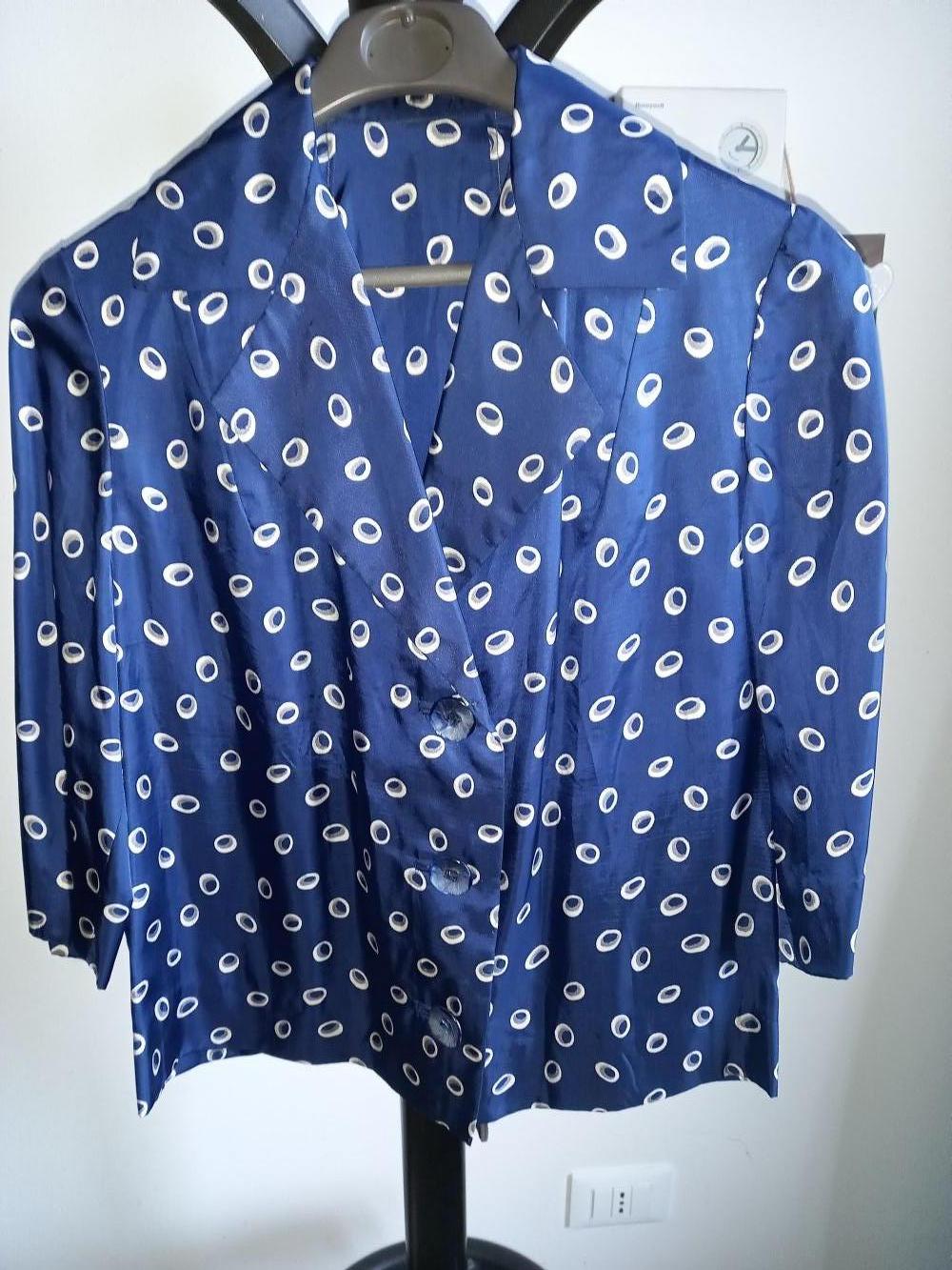 Descrizione:Confezionata dalla sarta, tessuto tipo raso/ seta, linea morbida,larghezza spalle cm 35, torace cm42,lunghezza capo circa 58 cm,maniche a 3/4