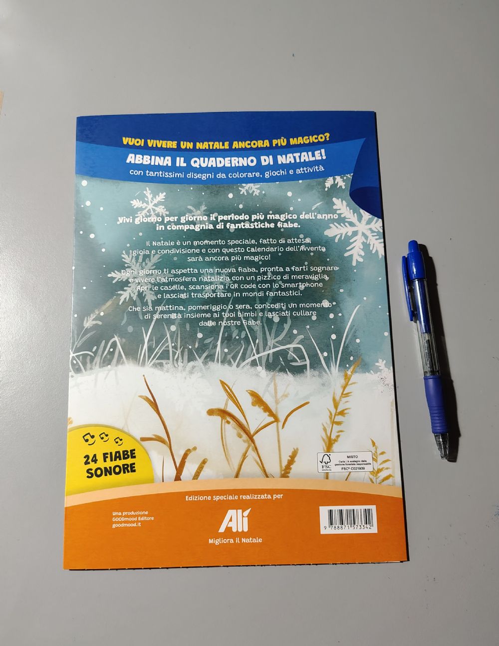 Descrizione:Calendario dell'Avvento sonoro. Le caselline nascondono un QRcode. Inquadrandolo con il telefono si può ascoltare una fiaba vocale.
