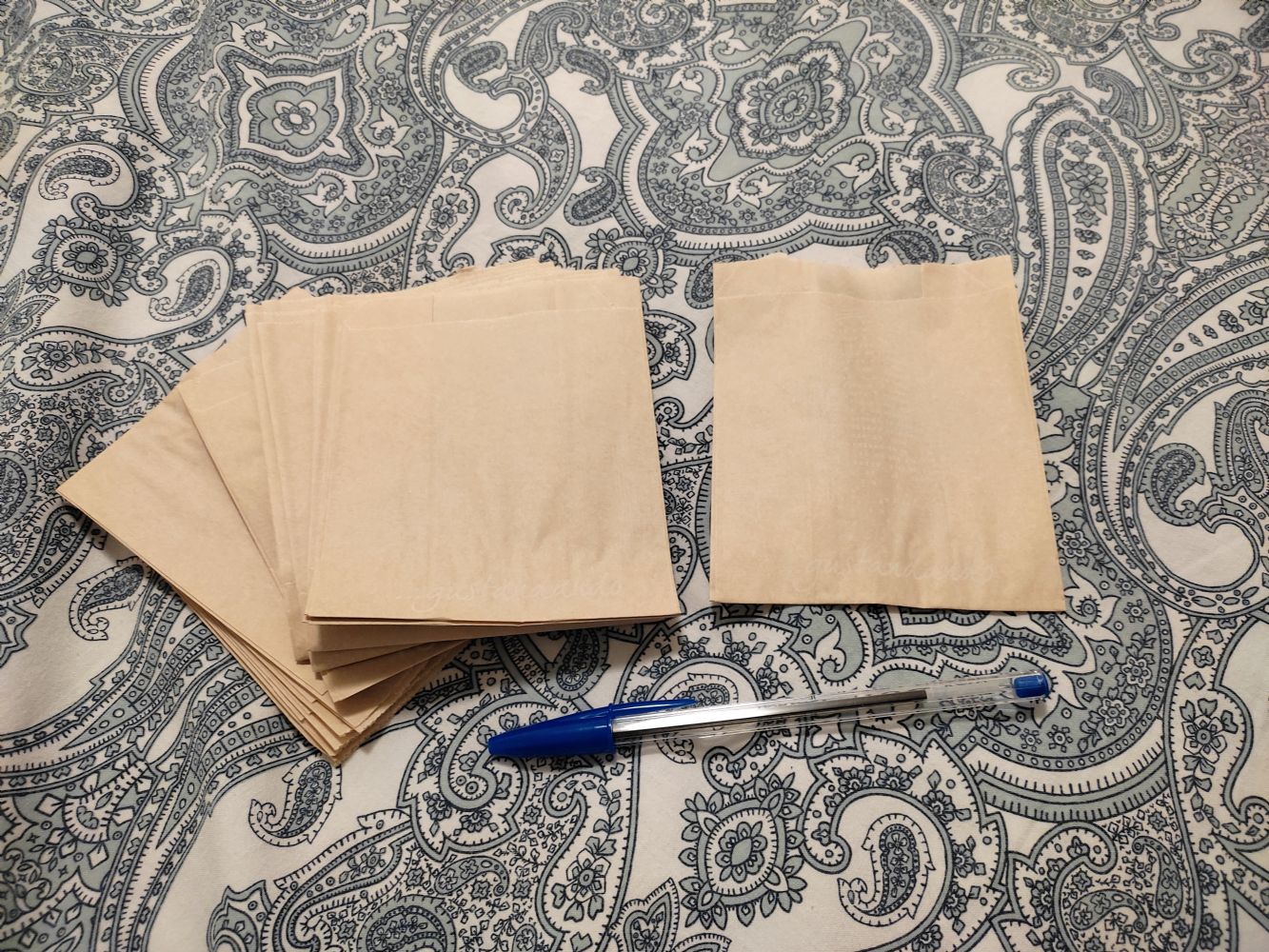 Sacchettini nuovi in carta dimensione monoporzioni per uso alimentare o altri usi.