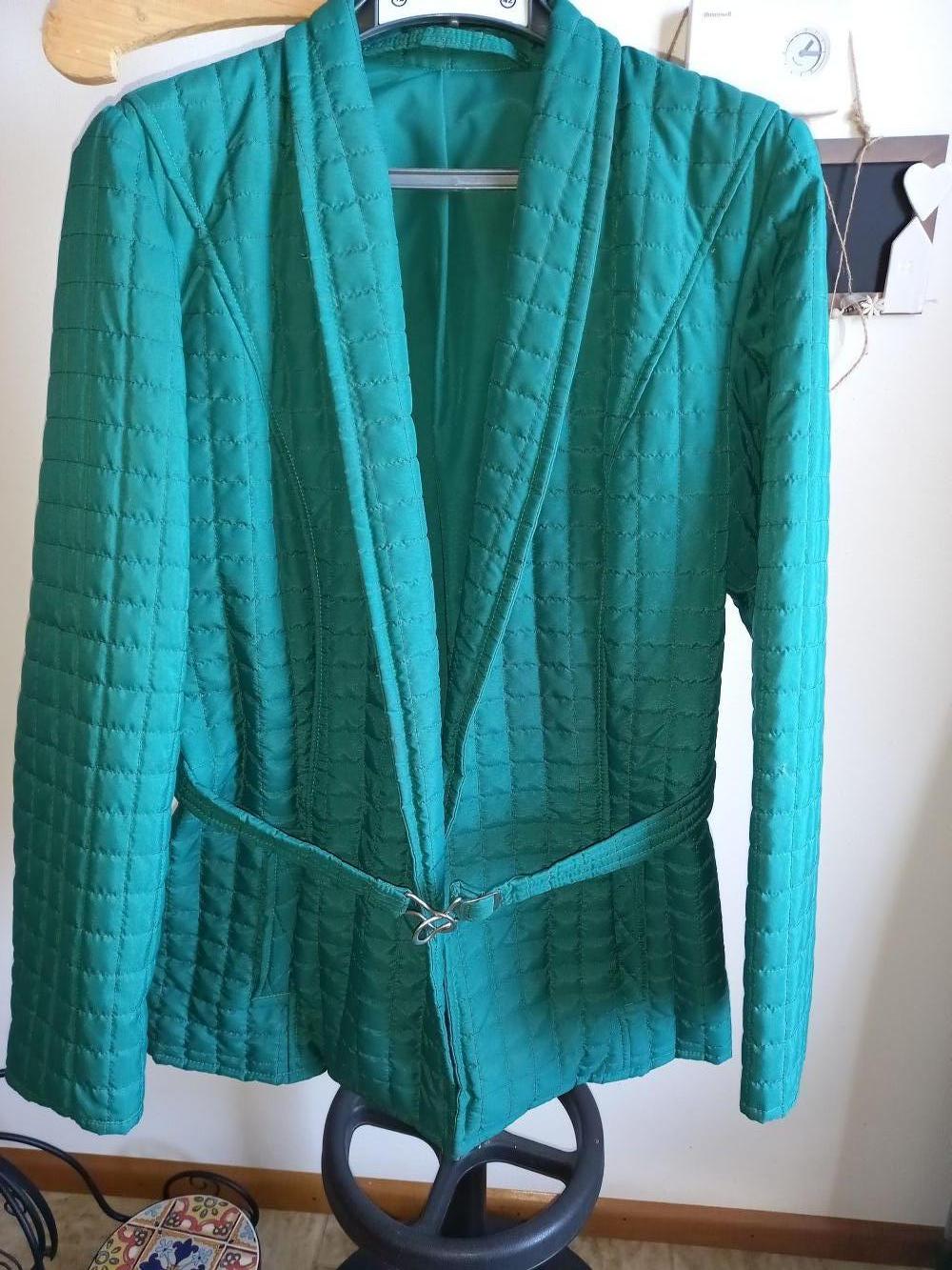 Descrizione:Color verde muschio tg 40/42, foderato. Non indicato tessuto, ma pensi poliestere. Larghezza spalle cm 49 circa,torace 48 circa,lunghezza capo cm 70, lunghezza maniche cm60. Non dotato di bottoni, si allaccia con cinturetta ( vedi foto)