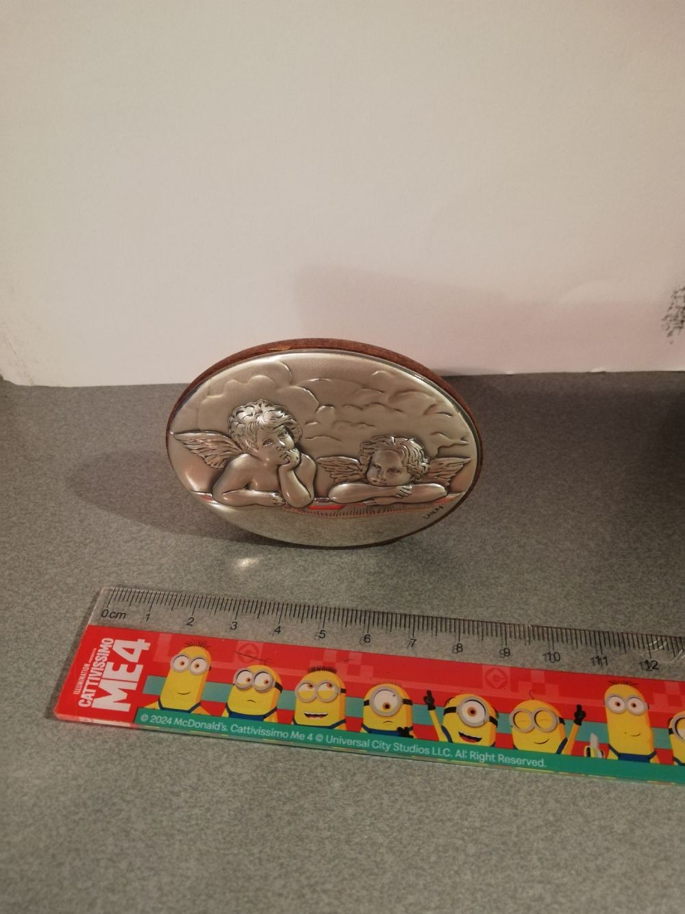Quadretto d'appoggio in legno con lamina d'argento raffigurante degli angioletti. Cedo per cambio genere.