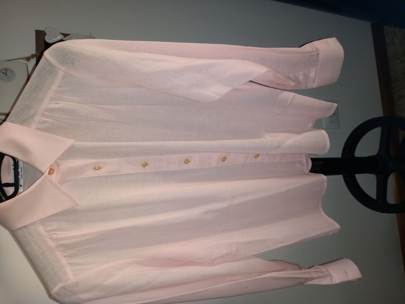Descrizione:Camicia in cotone color rosa chiaro, larghezza spalle cm 40, torace 50,lunghezza manica cm 62. Ha un piccolo filo tirato sul davanti ( vedi seconda foto)