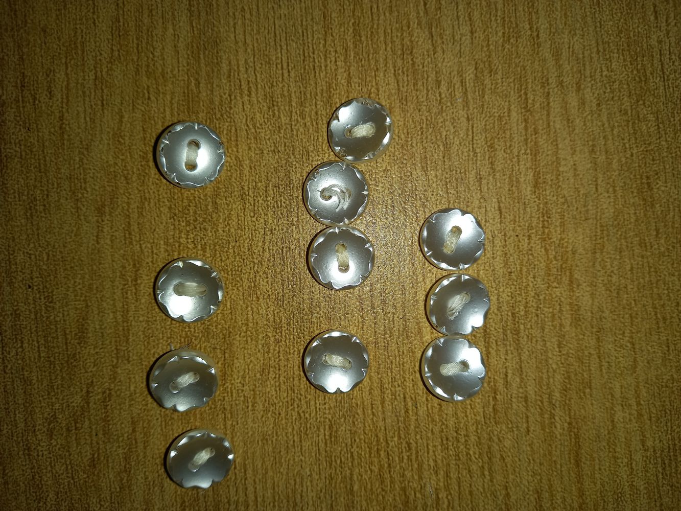 11 bottoni, stesso colore delle perle, diametro 1cm