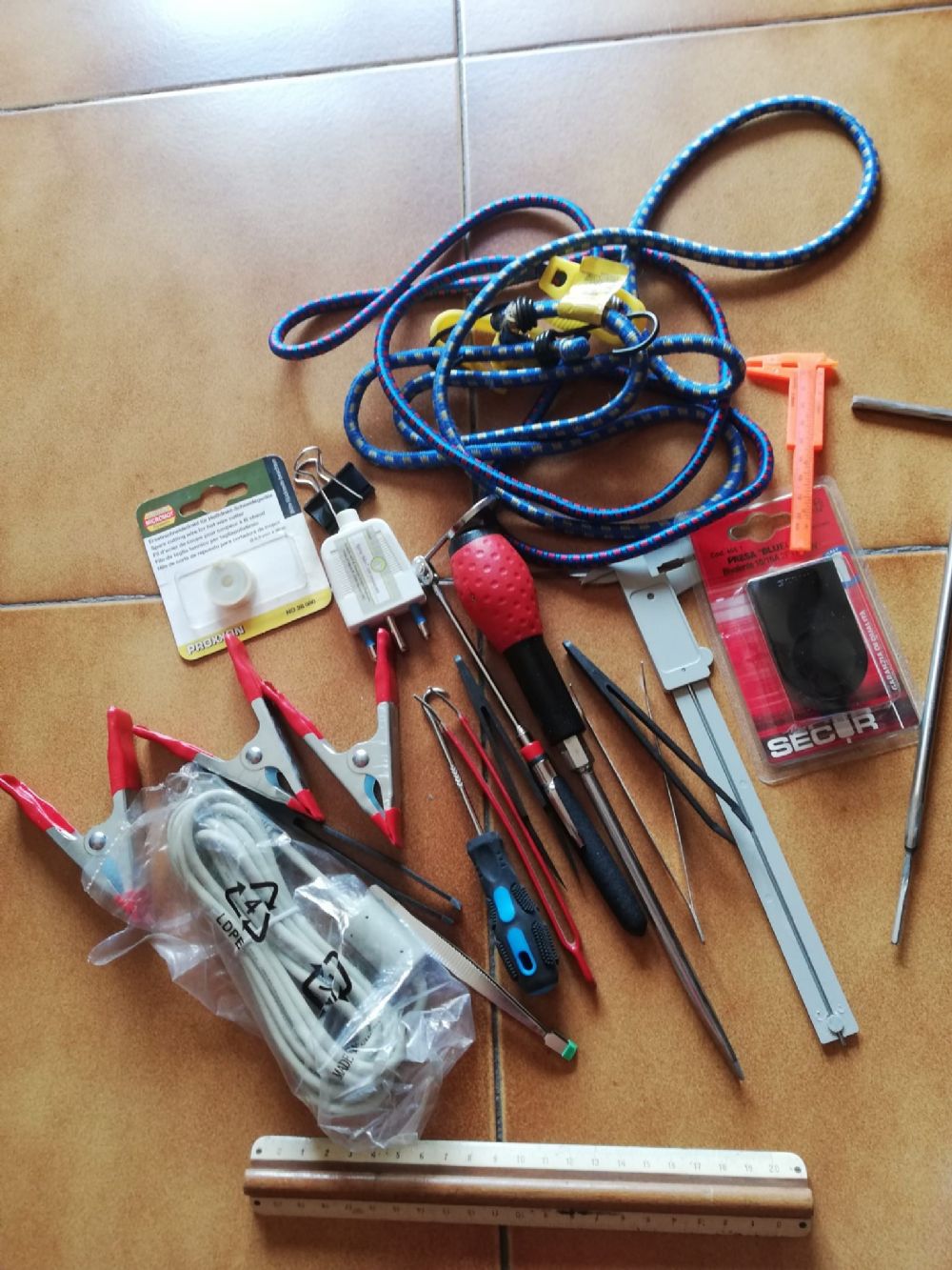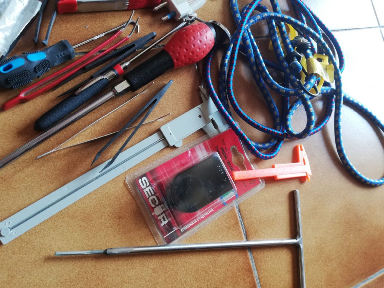 Descrizione:lotto di oggetti vari: morsetti, cacciavite, spine, funi elastiche, livelle, pinze ecc. Tutto usato poco in ottime condizioni. cedo per liberare