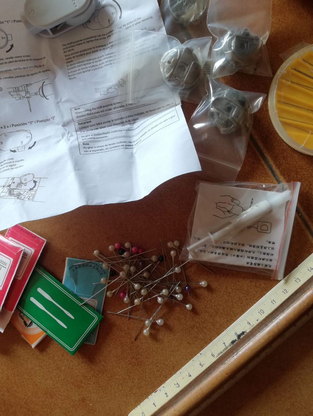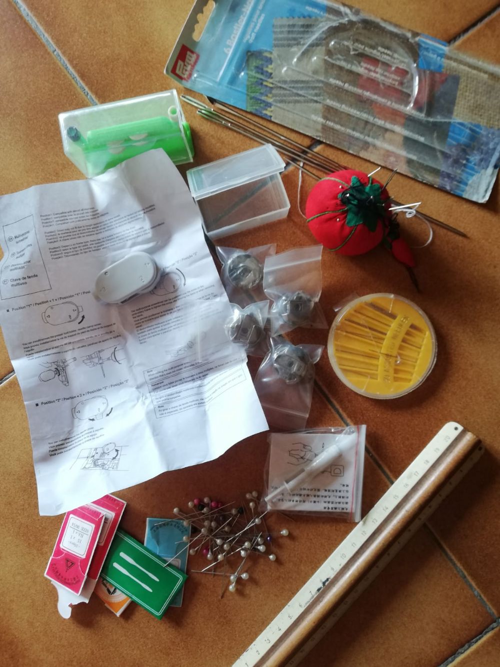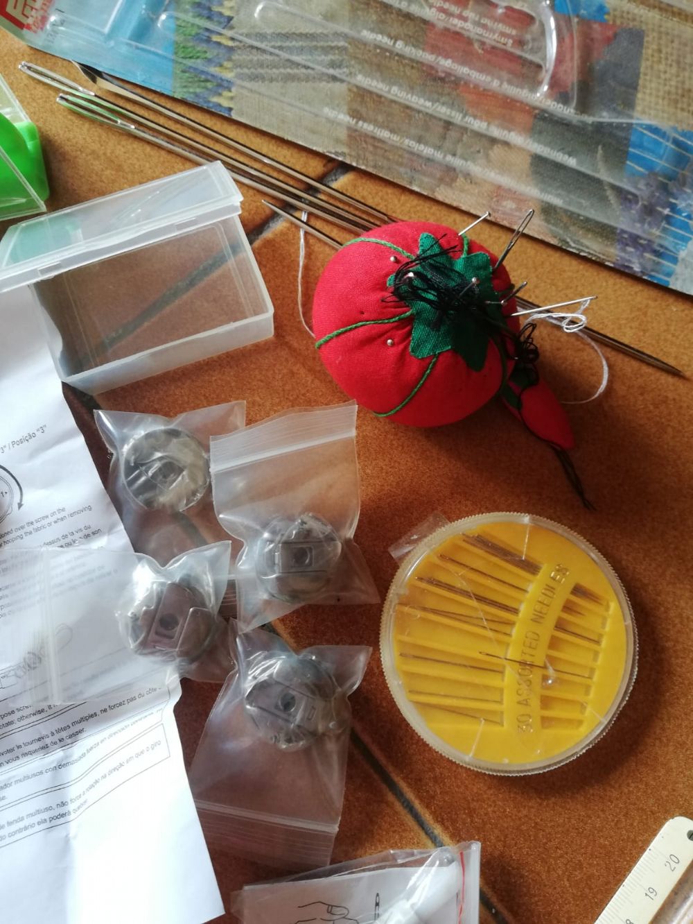 lotto cucito composto da aghi, spilli, accessori per singer, infilago ecc. cedo per liberare. tutto usato poco in perfette condizioni