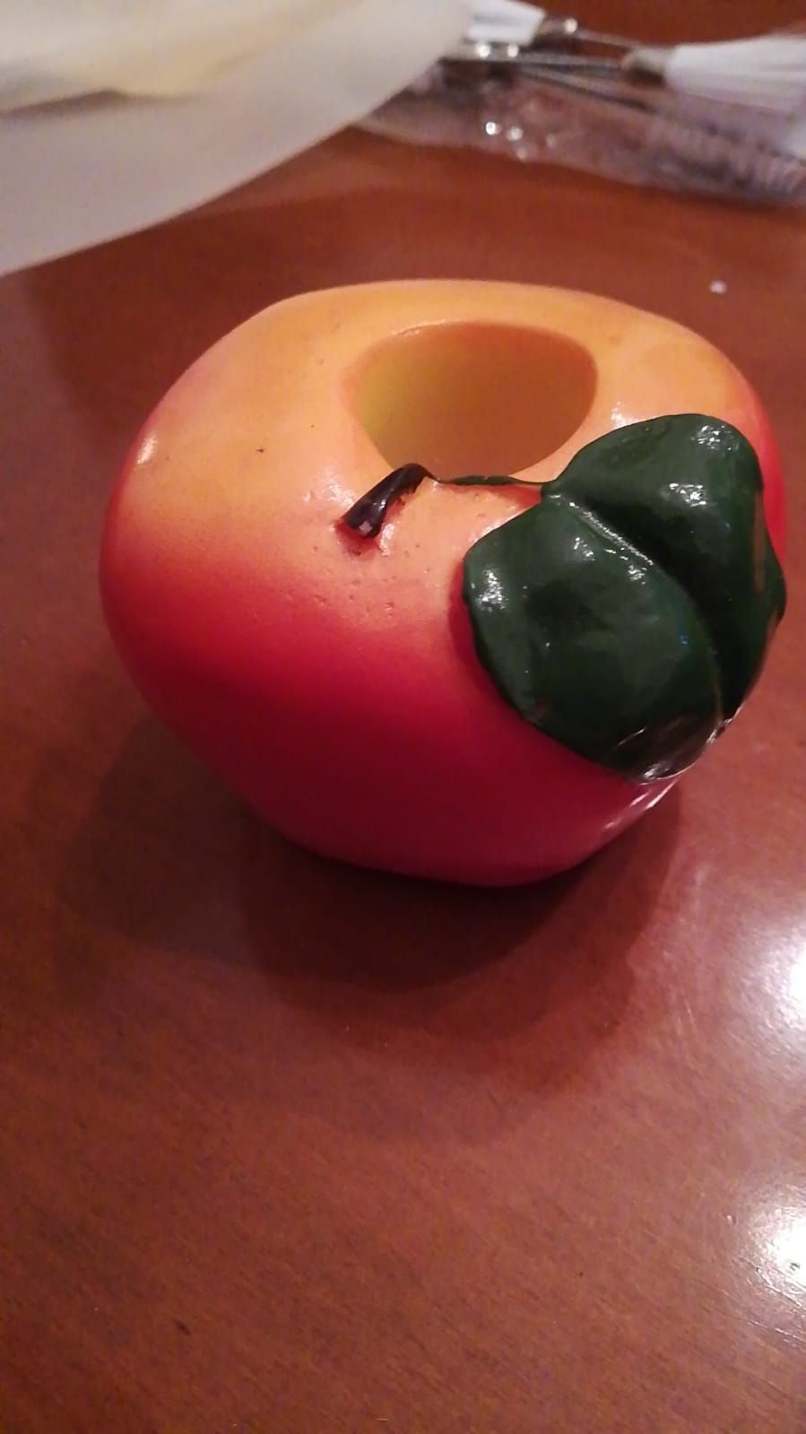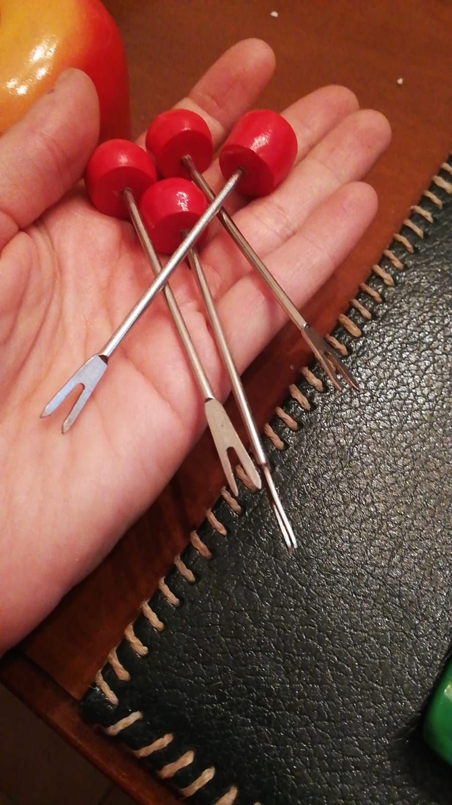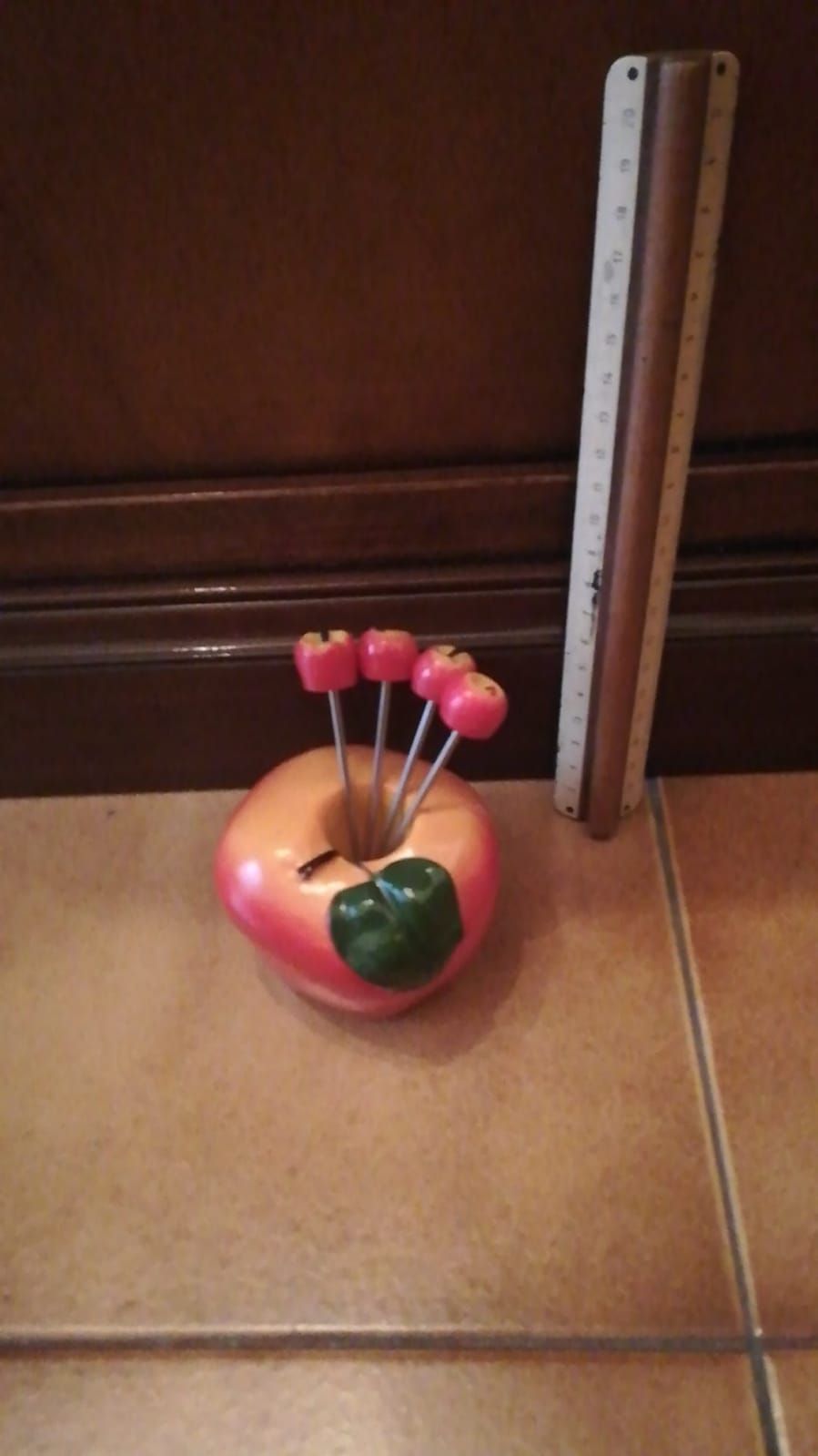 alice.toys domani controllo se le forchette hanno segni evidenti... Per il resto la mela non ha difetti e non c'è mai stata la confezione.