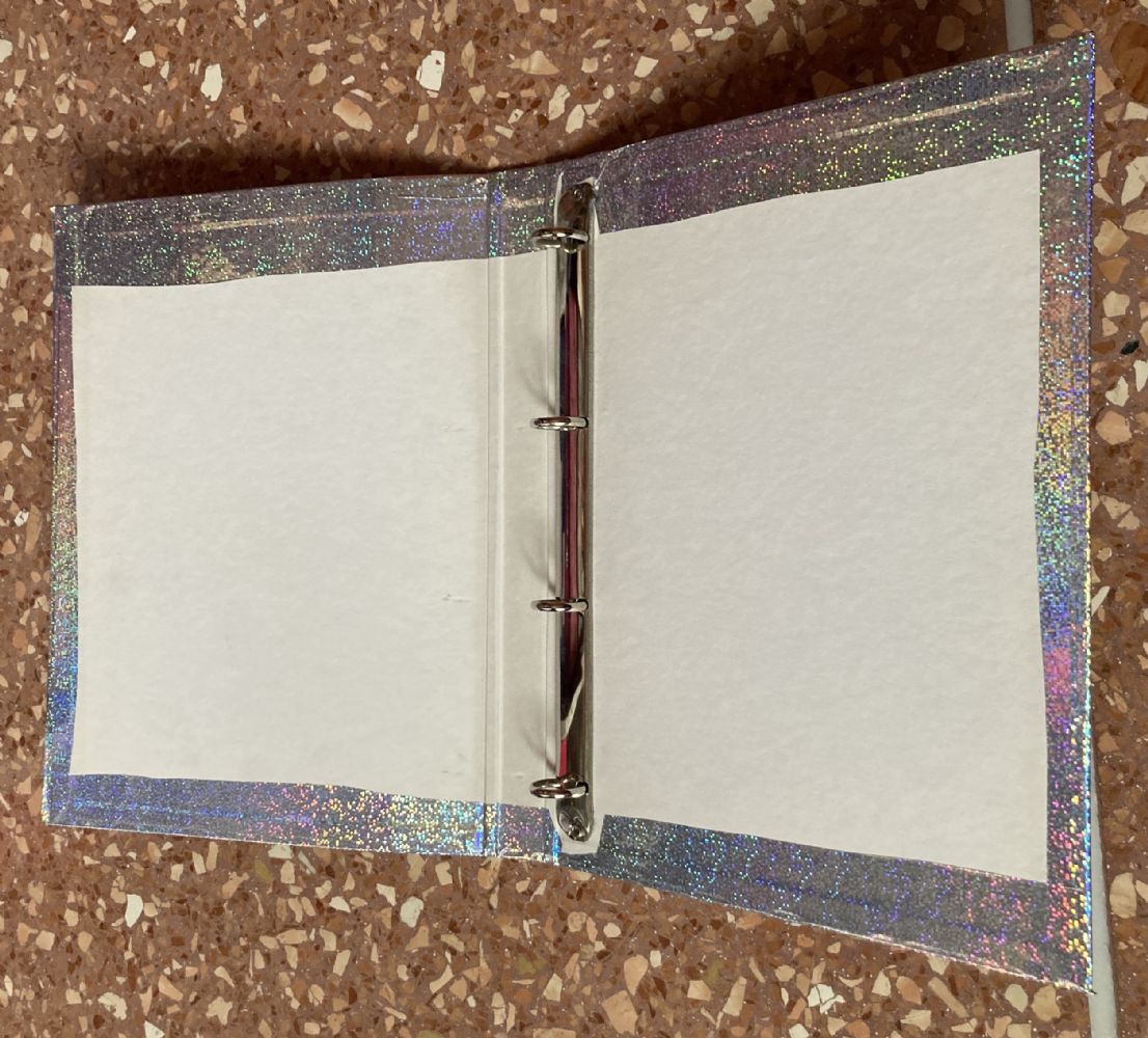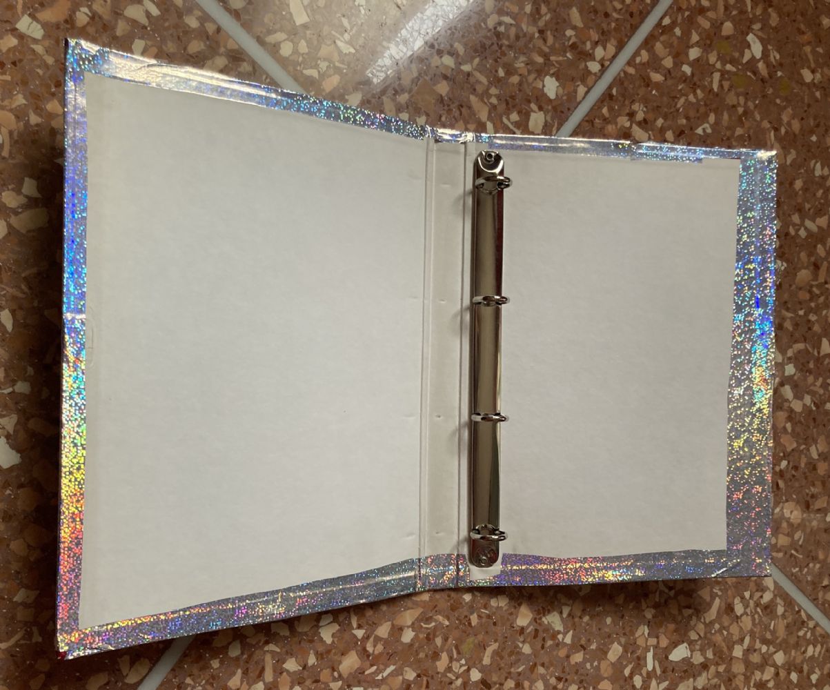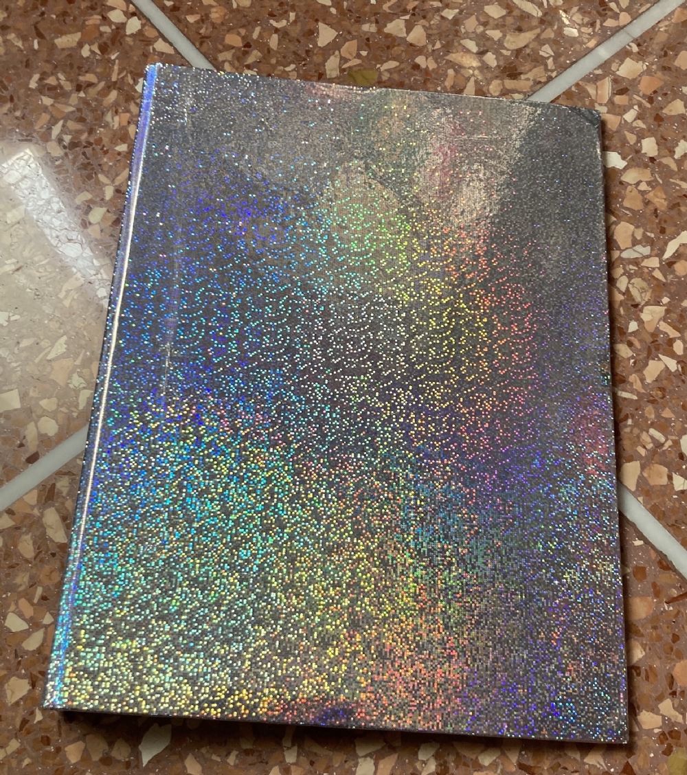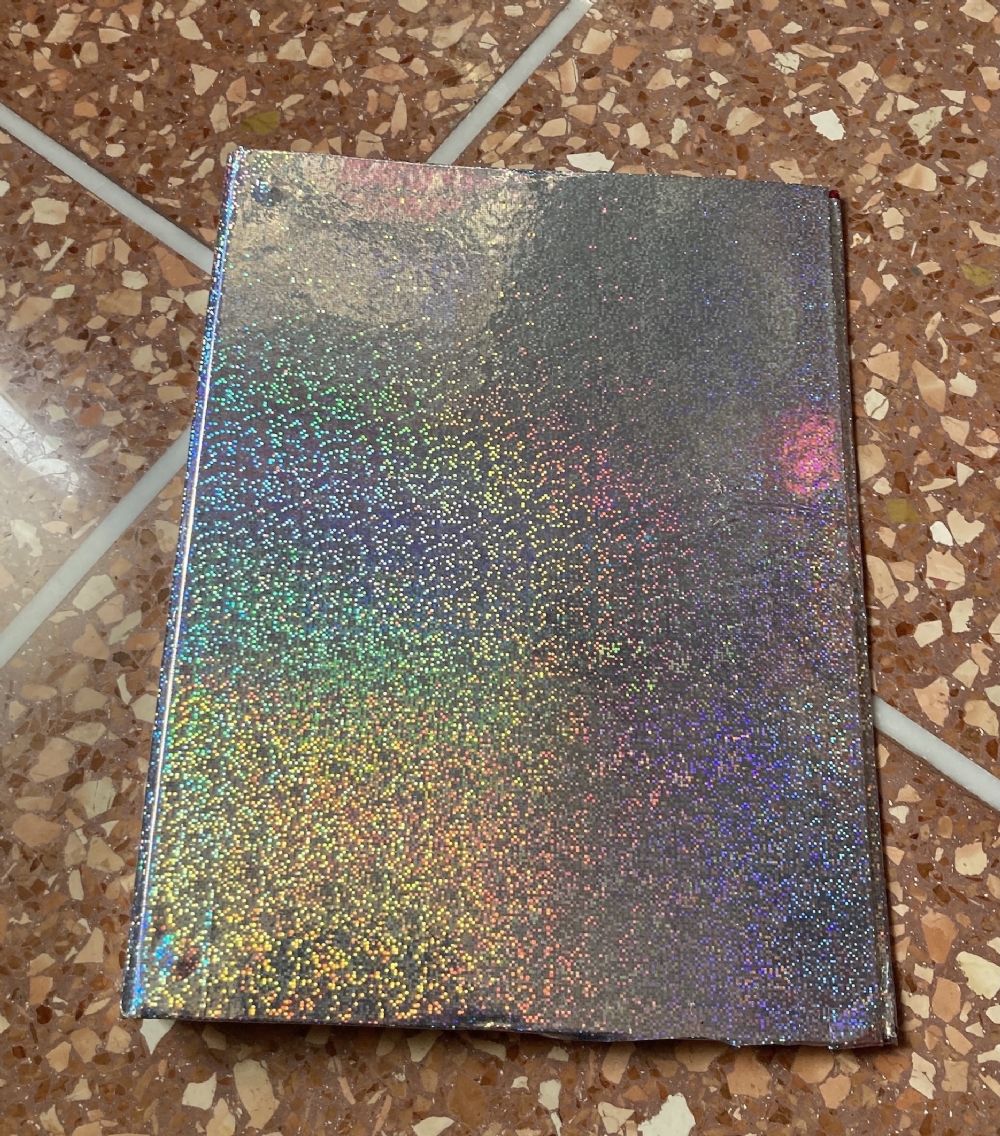 Descrizione:2 Quadernoni formato a4, ricoperti con adesivo glitterato.