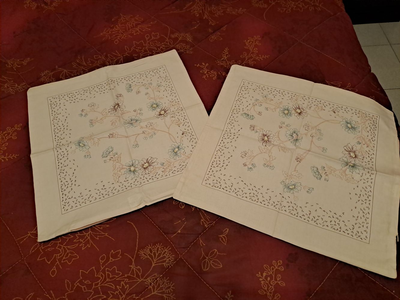 Descrizione:In puro cotone, usati pochissimo, facevano parte di un set di lenzuola da corredo , ottima qualità, cerniera laterale e due decori diversi nei due lati. Misura 40x40 cm, colore rosa pallido