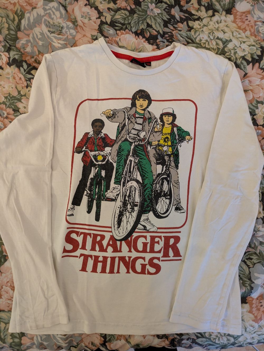Maglietta cotone manica lunga tg 11/12 anni di strangers thing bianca con stampa davanti