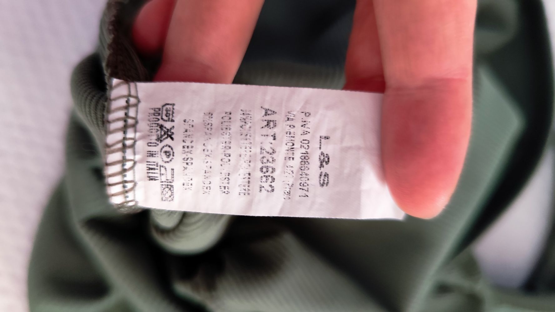 Tessuto jersey a costine elasticizzato, composto da 94% poliestere e 6% spandex.