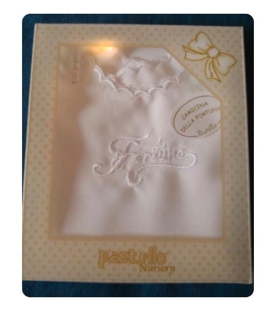 Descrizione:camicina della fortuna, nuova, nella sua confezione originale, adatta come regalo nascita: