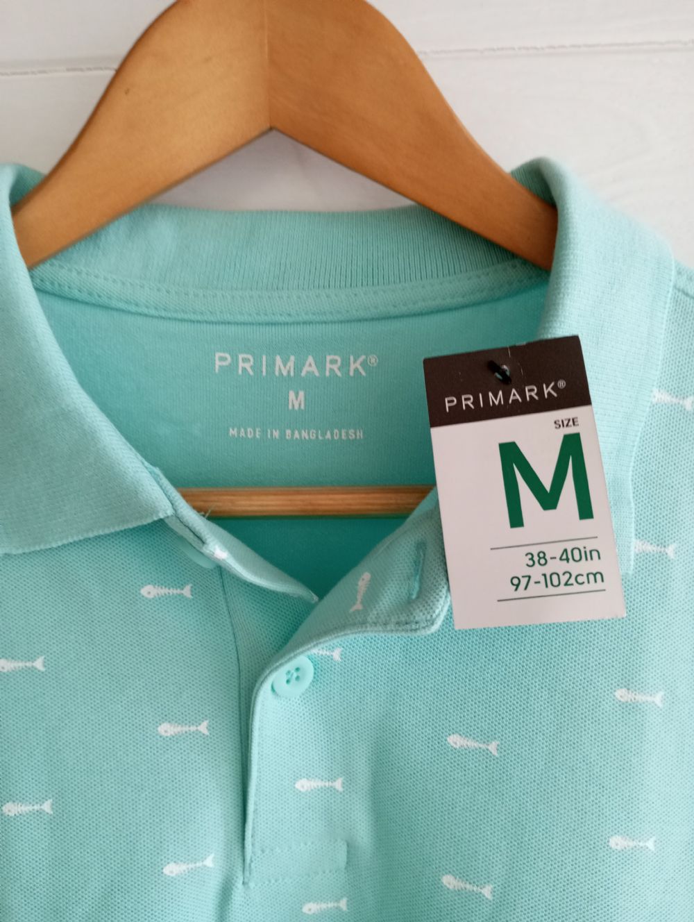 Bel colore, fantasia lische di pesce. Taglia M, cotone.