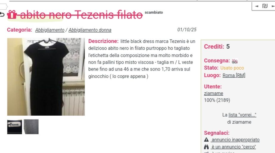 Il sito di baratto online asincrono per lo scambio, il riuso e il riutilizzo di oggetti usati, nonché banca del tempo.