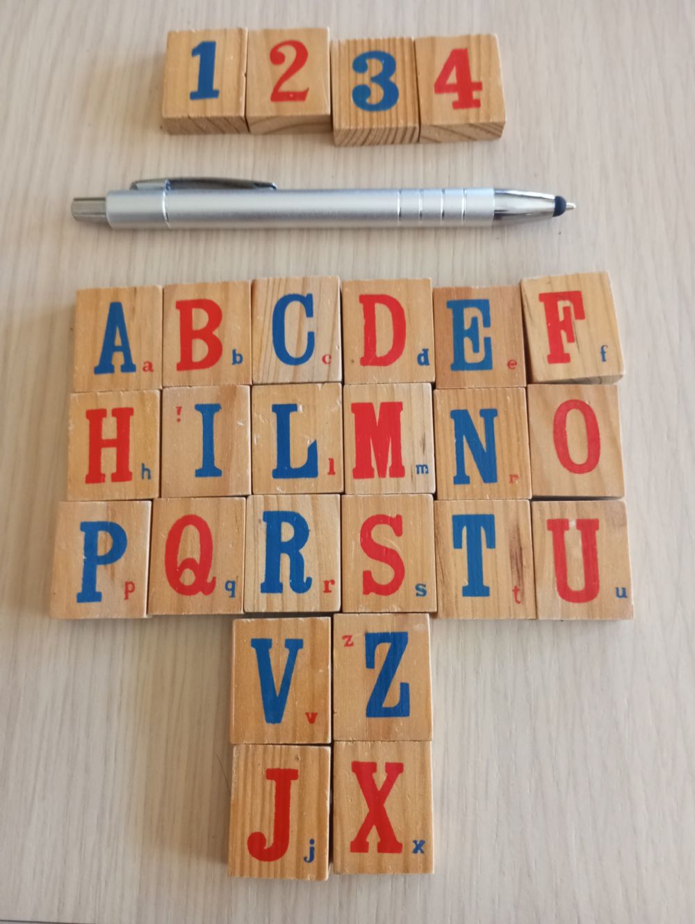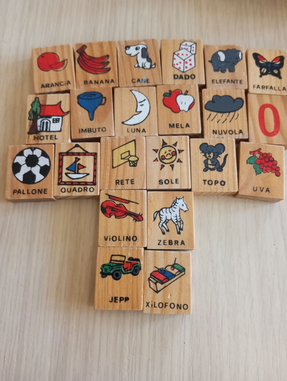 Dietro le lettere ci sono i relativi oggetti corrispondenti alla lettera