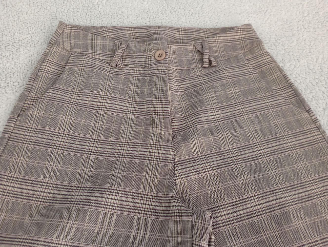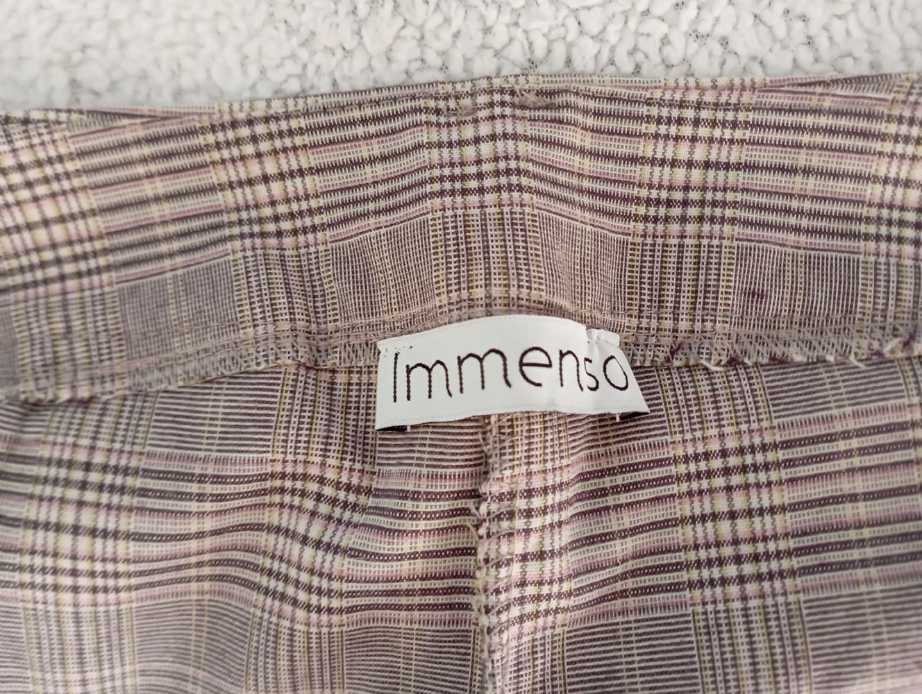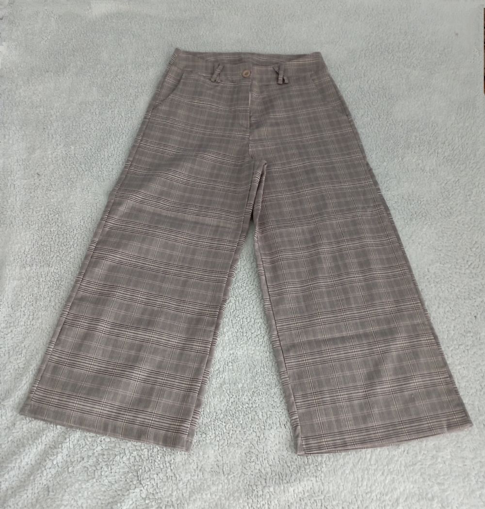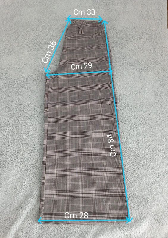 Descrizione:Pantaloni a vita alta con gamba dritta, corti al polpaccio, in vita fantasia con passanti incrociati. Immenso, taglia S, vedi misure in foto.