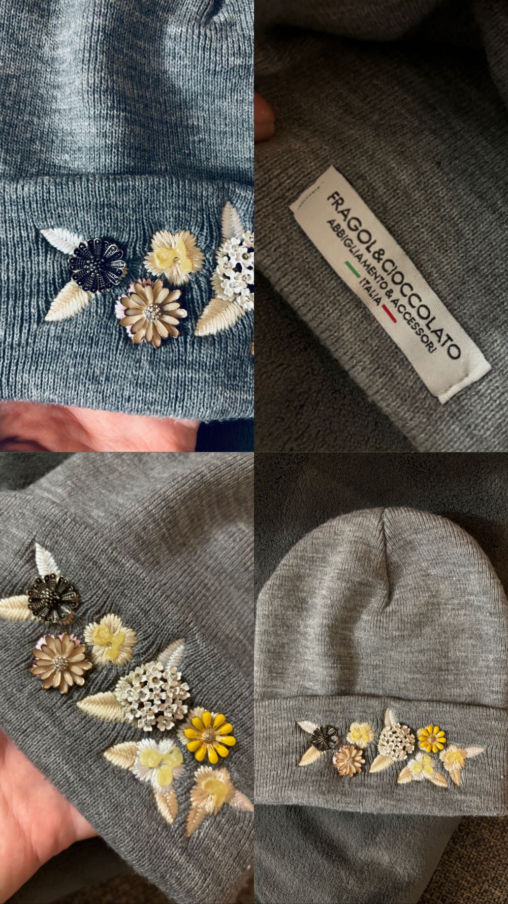 Descrizione:Bellissimo cappellino con decorazioni in metallo sul davanti
