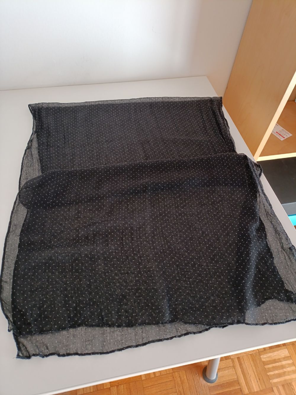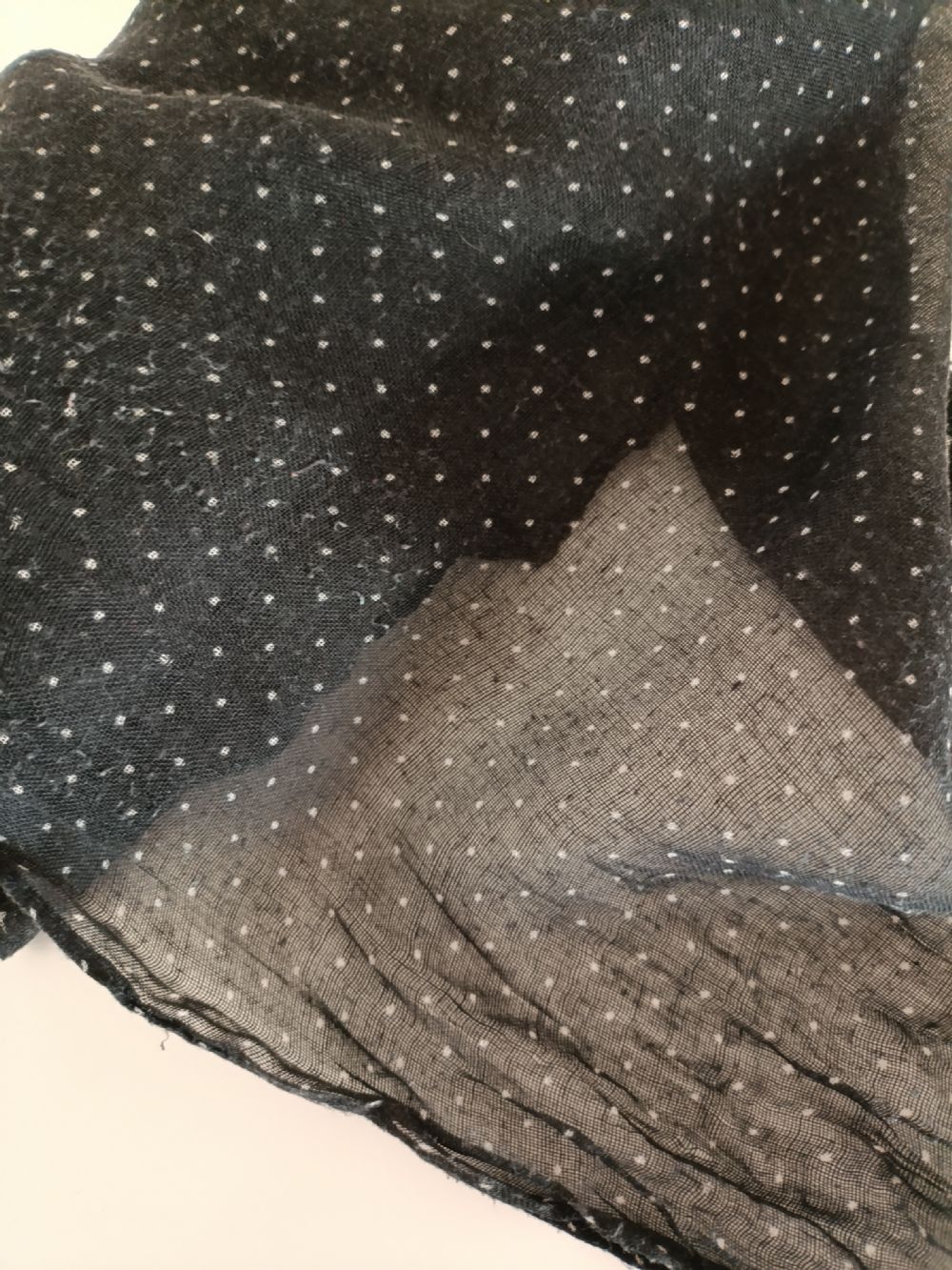In tessuto leggero tipo garza di cotone, 56x160 cm. Nera a pois bianchi