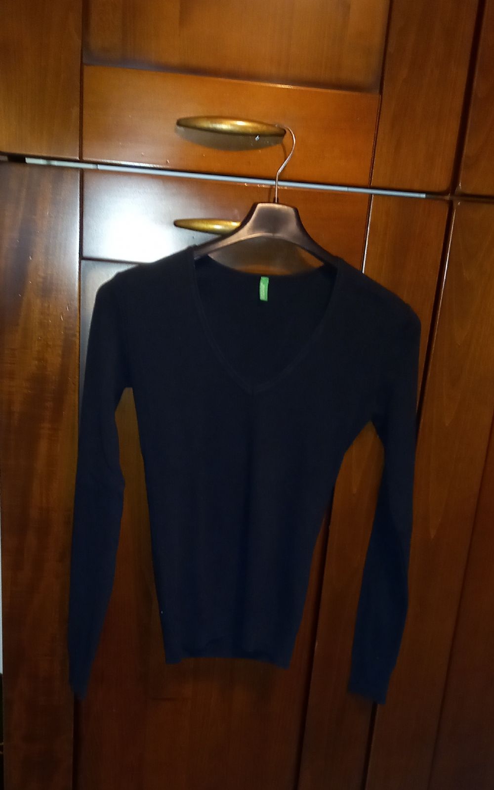 Descrizione:Maglioncino Benetton in cotone, scollo.a V, lunghezza totale cm 56,lunghezza maniche cm 59, larghezza torace cm 39 circa.