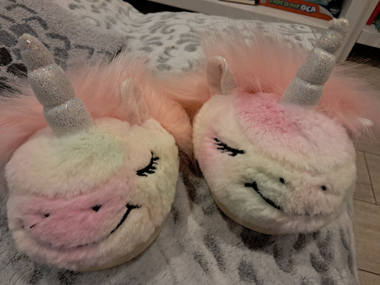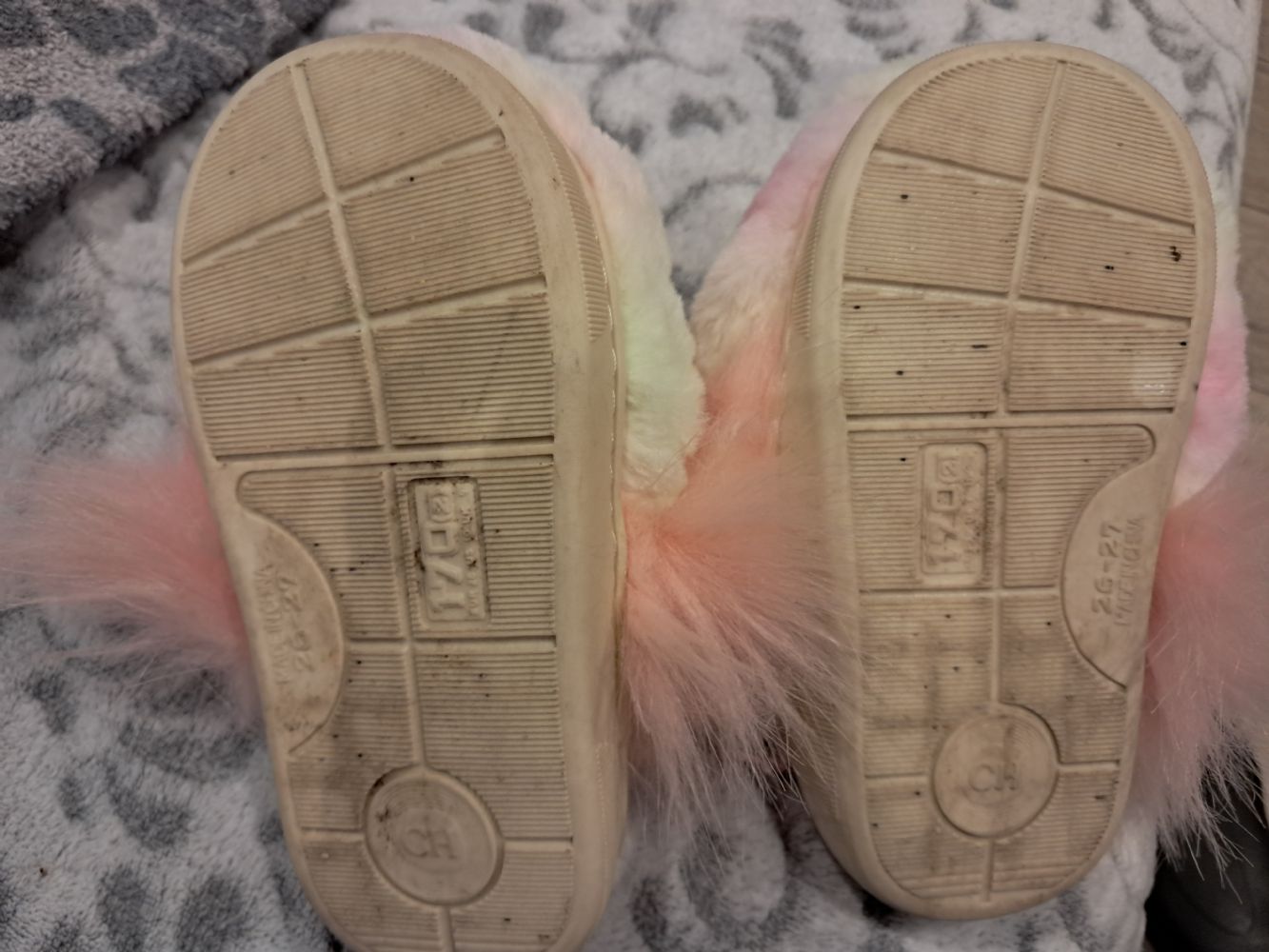 Descrizione:Ciabattine pelose in buone condizioni. Hanno un elastico da passare dietro il tallone.