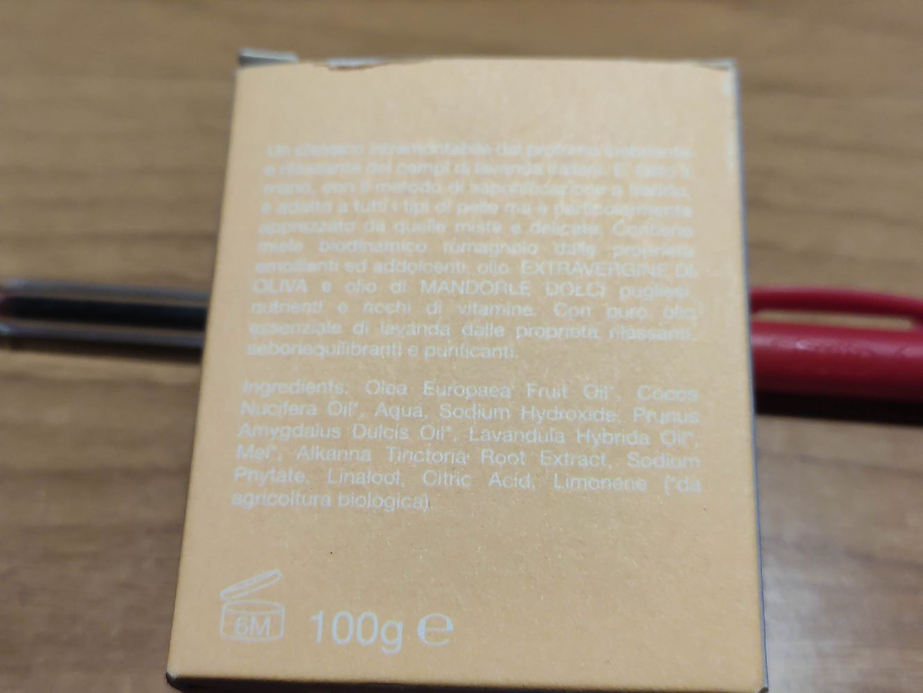 Miele e lavanda da 100 g. a base di olio evo. Marca "la saponaria"