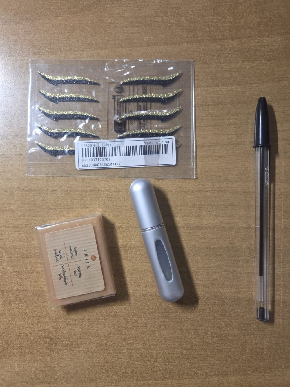eyeliner adesivo, saponetta nuova, contenitore porta profumo, tutto per 1 cr