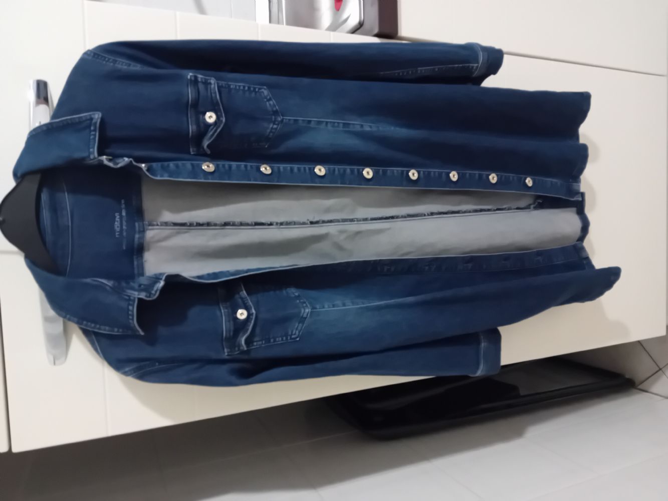 Descrizione:Messo davvero poco motivi 98%cotone 2%elastico segna 46 ma io sono 44 e mi sta benissimo può essere usato come giacca lunga