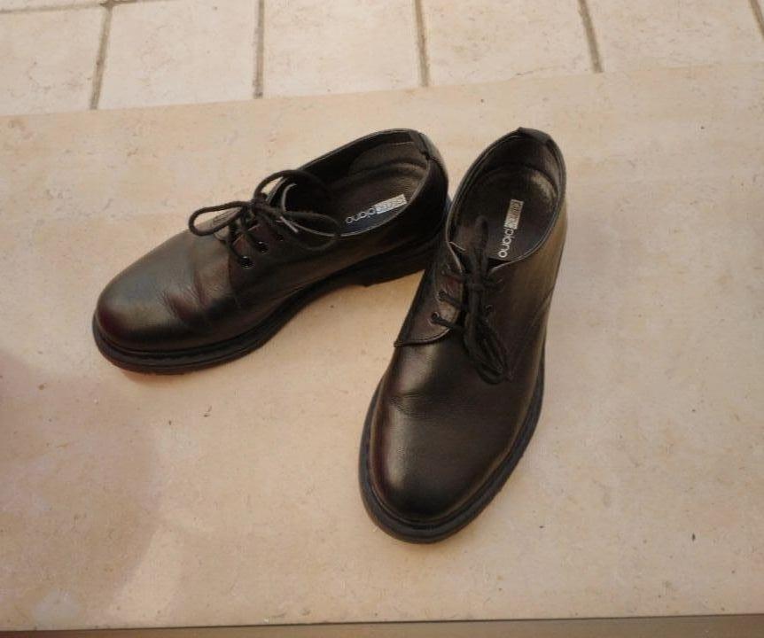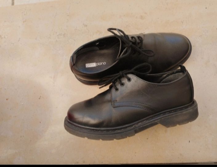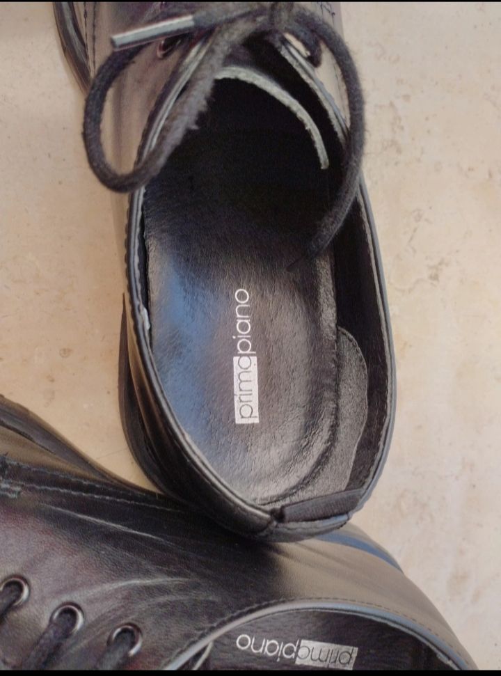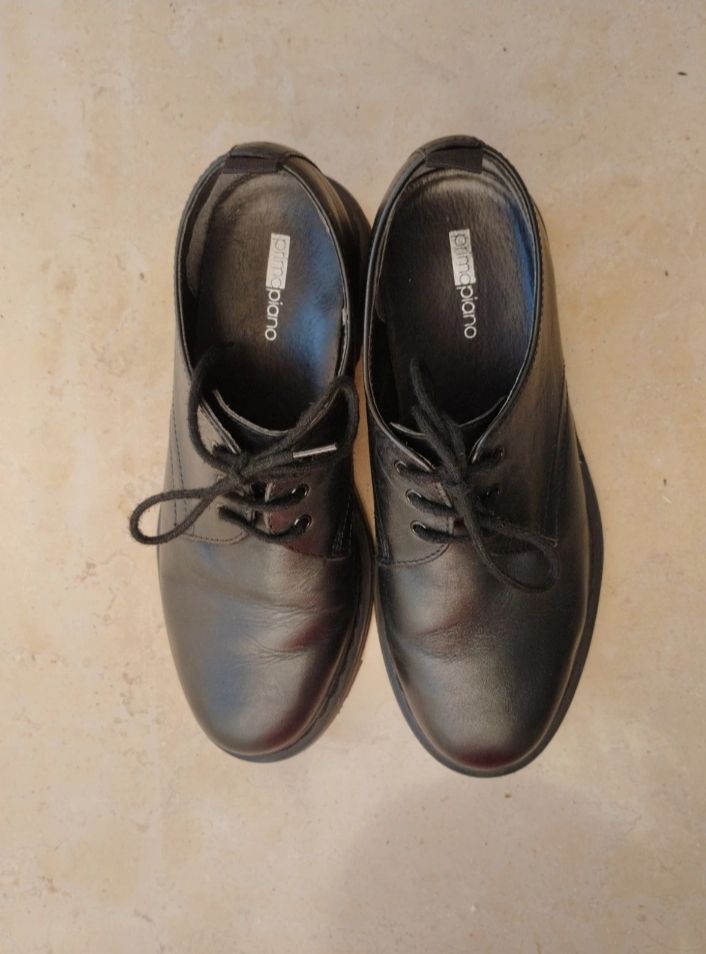 Descrizione:Scarpe stringate derby interamente in pelle nera, da donna, ma direi anche unisex, numero 39, comodissime, e molto versatili, piuttosto robuste con tomaia cucita, marca primopiano.