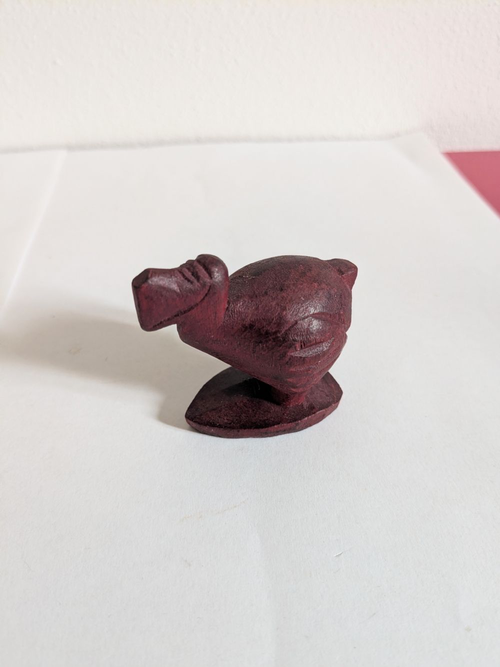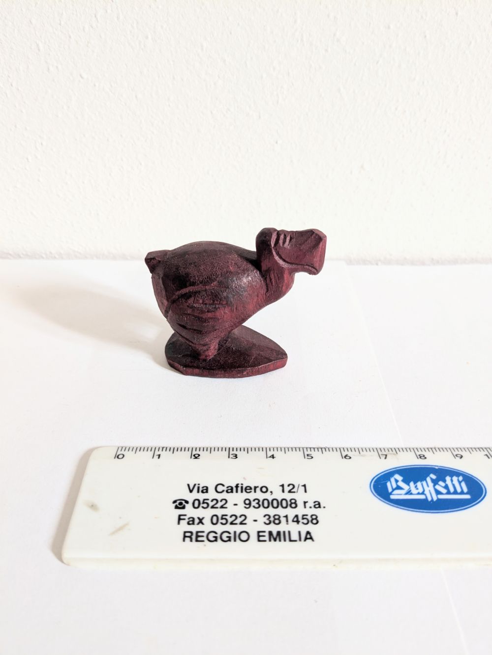 Descrizione:Statuetta in legno verniciato color rosso molto scuro a forma di Dodo stilizzato, realizzata a a mano
