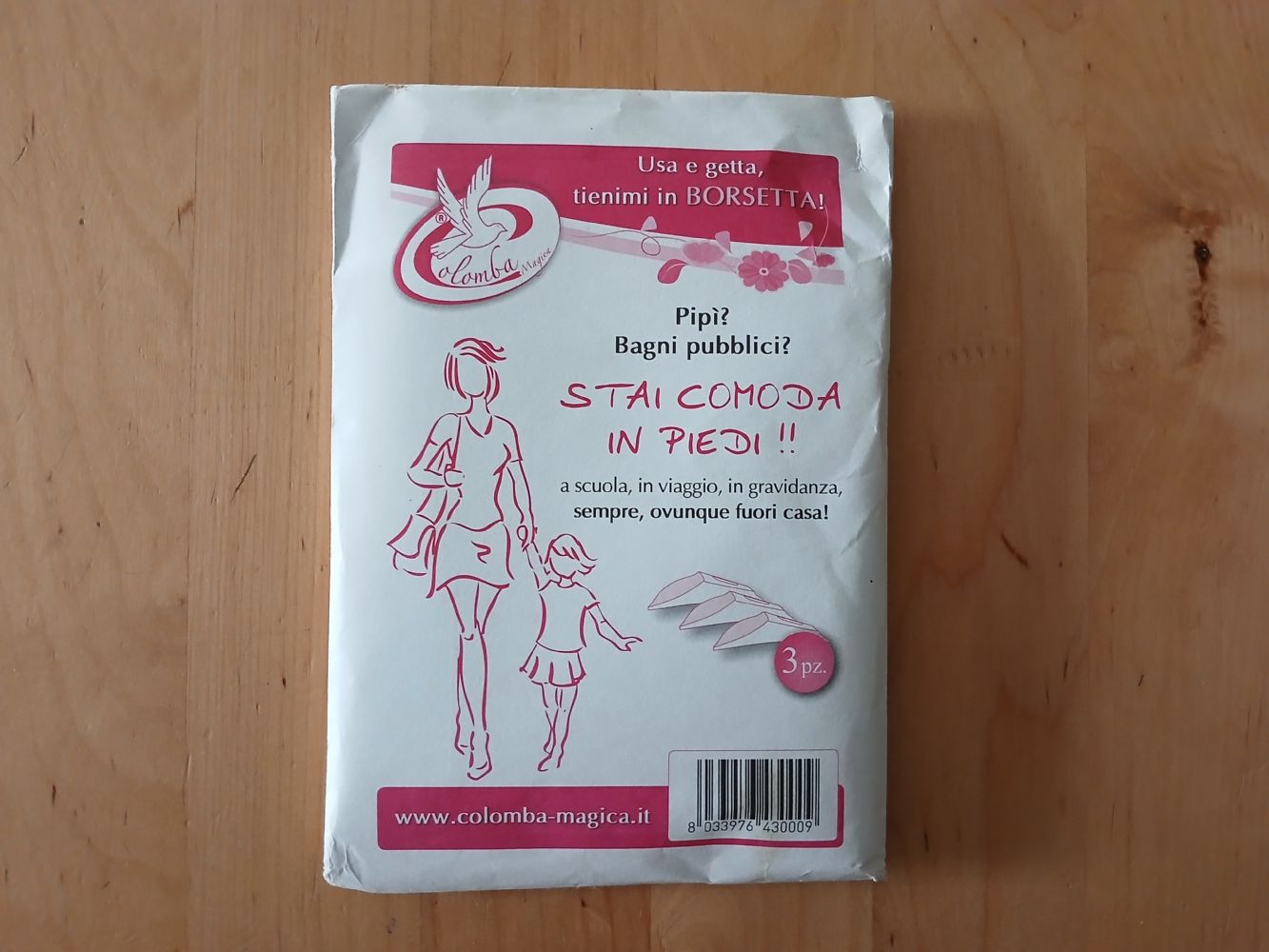 Busta contenente 3 coni in cartoncino per fare la pipì fuori casa.