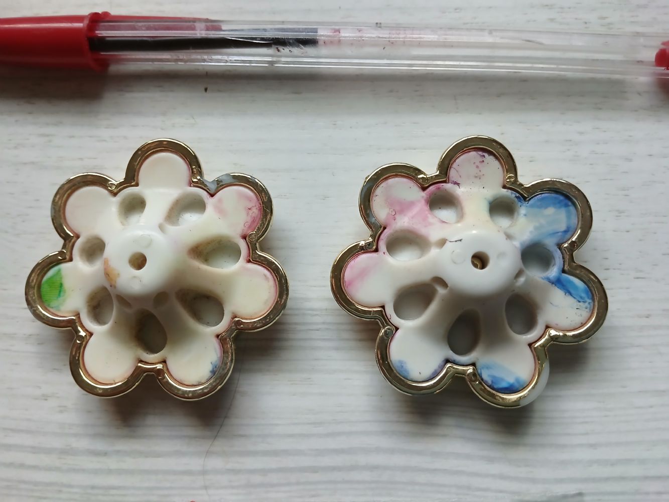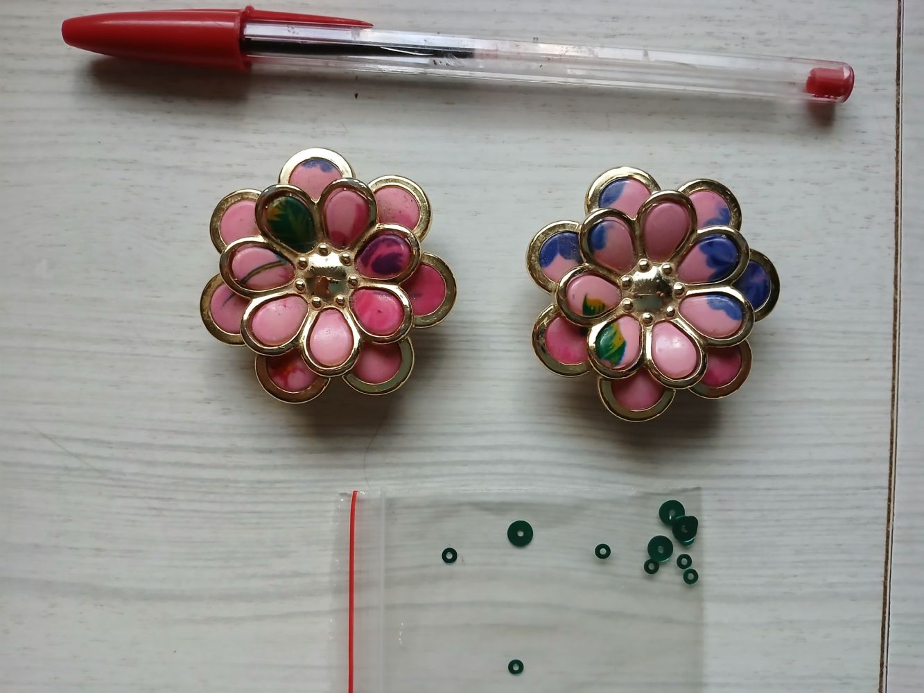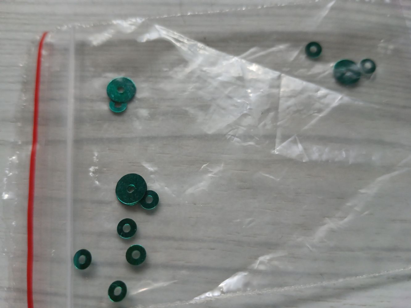 Descrizione:Sono due bottoni di circa 4,5 cm l'uno e alcune paillettes di un bel verde per lavori creativi.