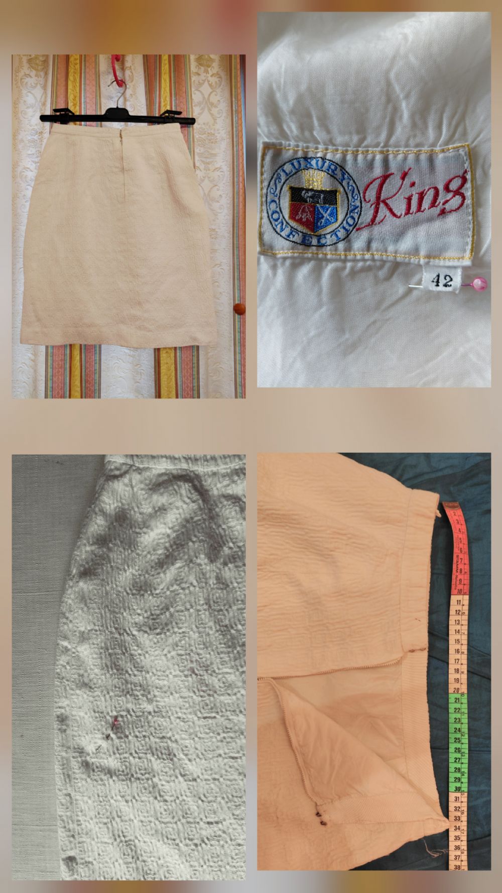 Descrizione:Completo donna tg.42 giacchina manica 3/4 e gonna. Ho messo usato tanto perché datato, di quei capi che si facevano una volta. Curato nei dettagli, ma da troppi anni nell' armadio e ho bisogno di fare spazio. Ho riattaccato il fiocchetto alla giacchina affinché questo annuncio fosse completo, ma la portavo senza per dare un taglio più moderno. Perfetta sul jeans. Da rinfrescare, la gonna ha un leggero alone che segnalo con uno spillo, vedi foto dedicata. Non c é l etichetta della composizione ma direi cotone o piquet, il tutto completamente foderato. Volendo allungare la gonna restano ancora un paio di cm di orlo. Misure in foto. Consegna a mano o collettiva Varese.
