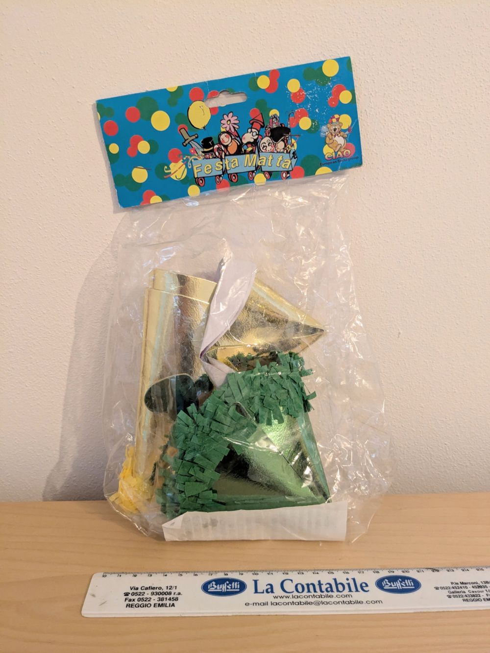 Descrizione:Confezione nuova (solo un pò datata) di 6 cappellini + 6 lingue di menelik, la misura è per bambini