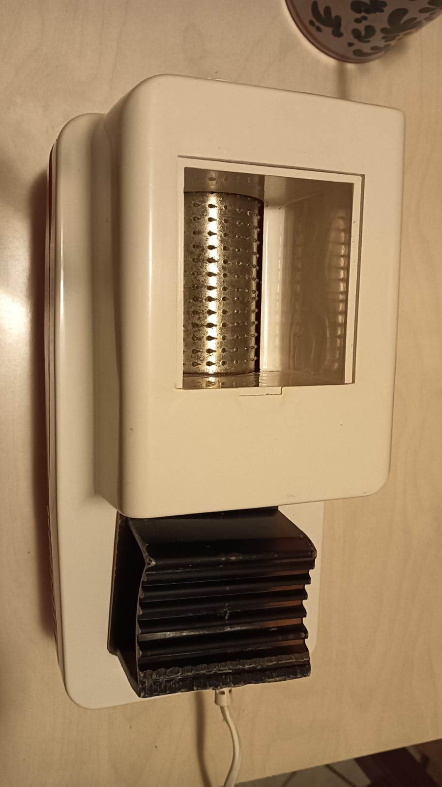 Descrizione:grattugia elettrica Fiseldem made in Italy funzionante e perfetta nessun punto di rugine unica pecca che il contenitre raccogli formaggio non è il suo ma adattato