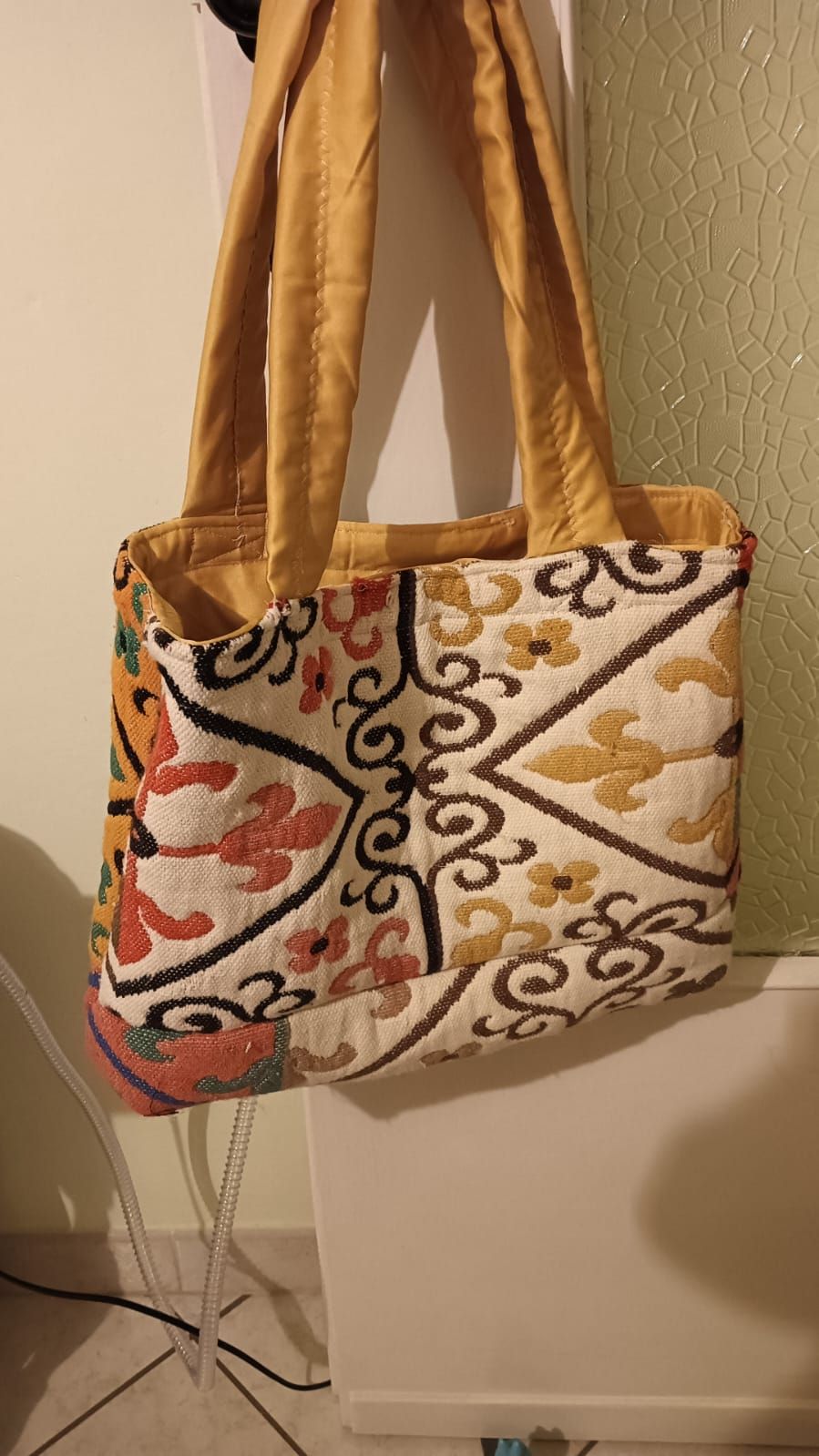 Ottimo lavoro: la borsa è tutta foderata e con i manici rinforzati, super indovinata la scelta del tessuto, perfetto per una borsa!