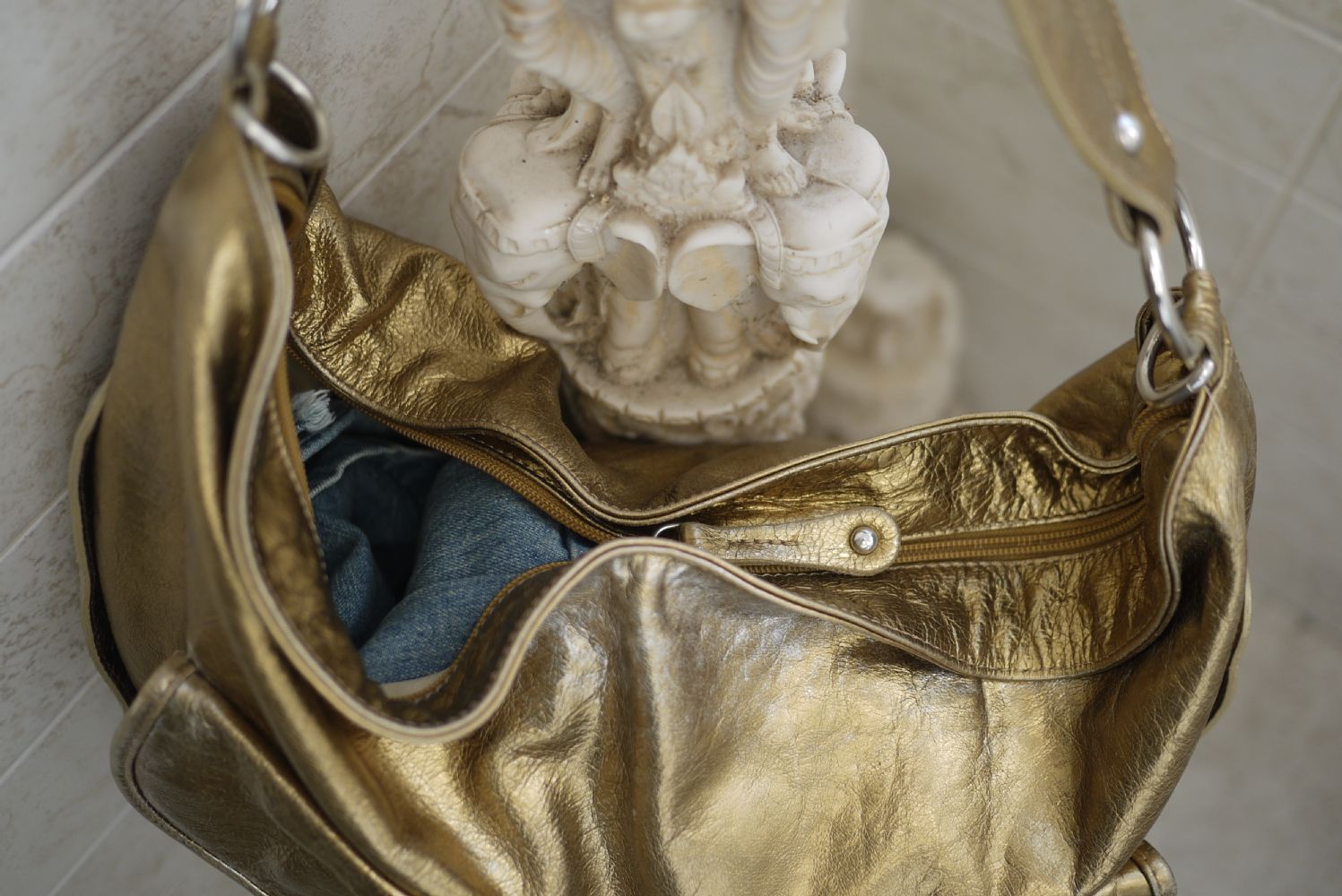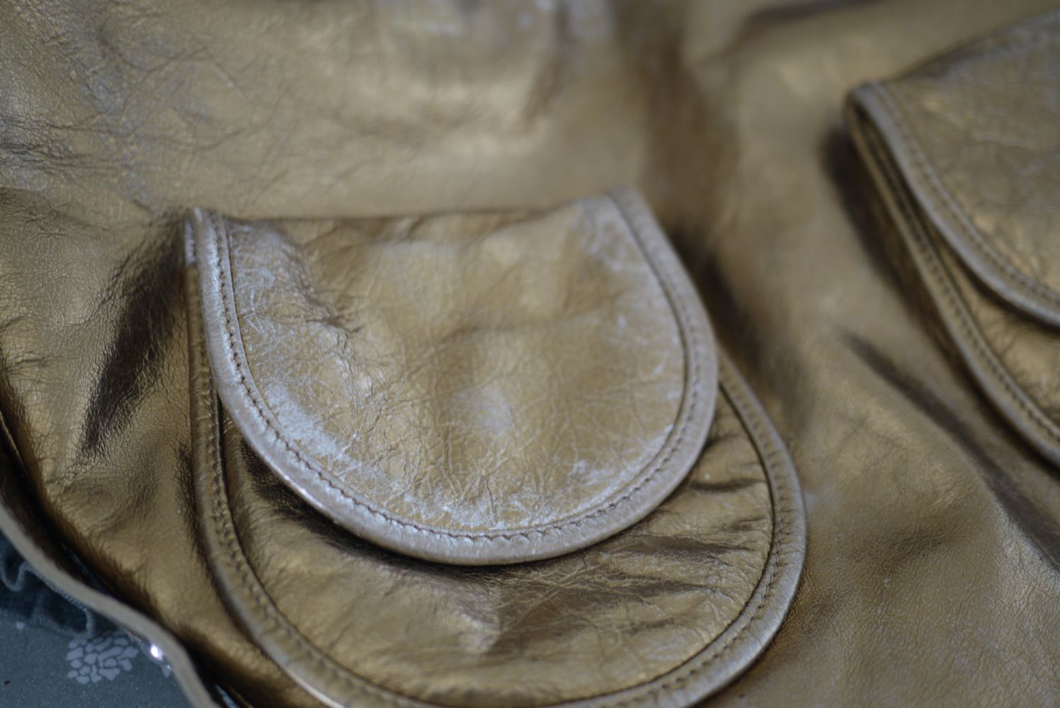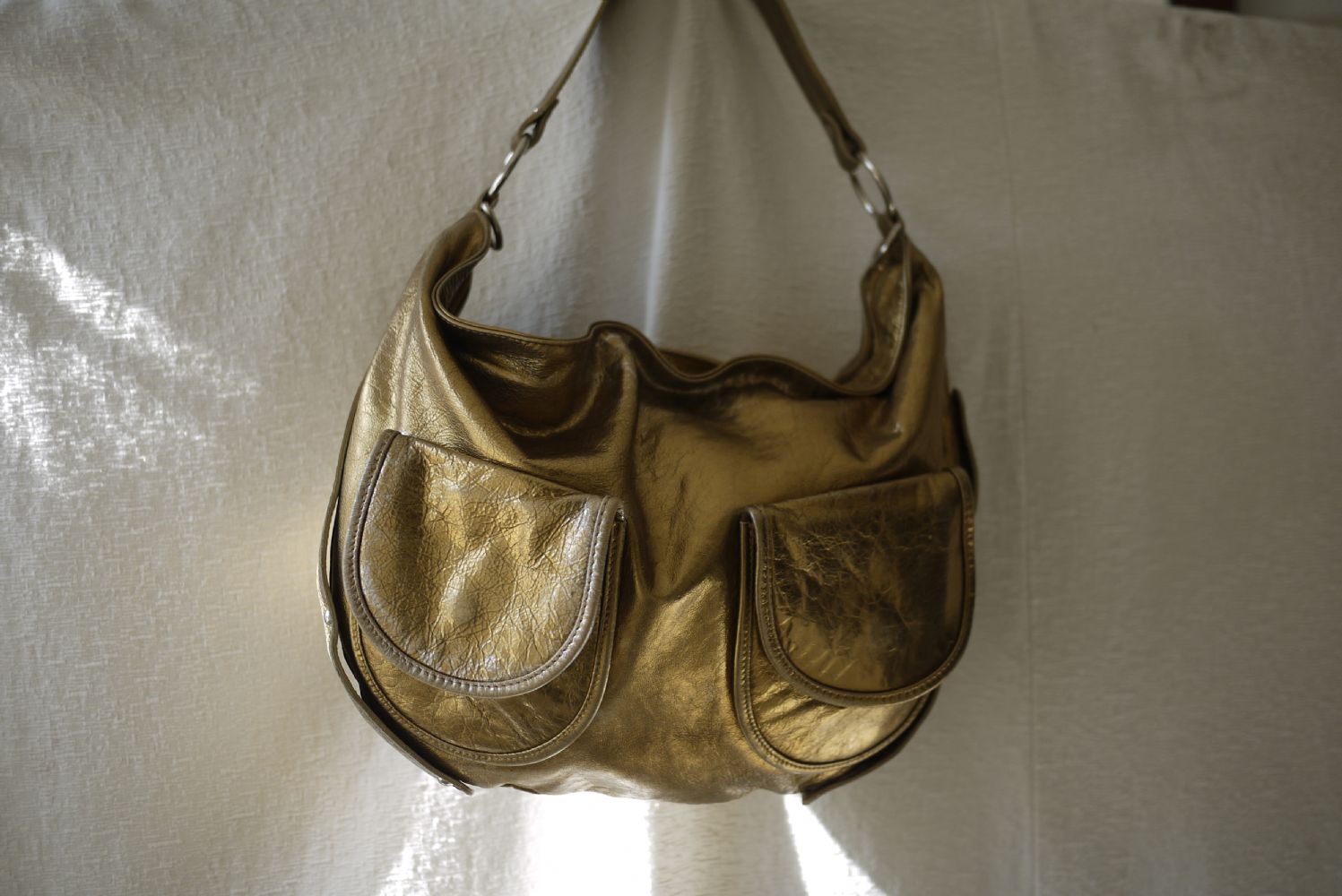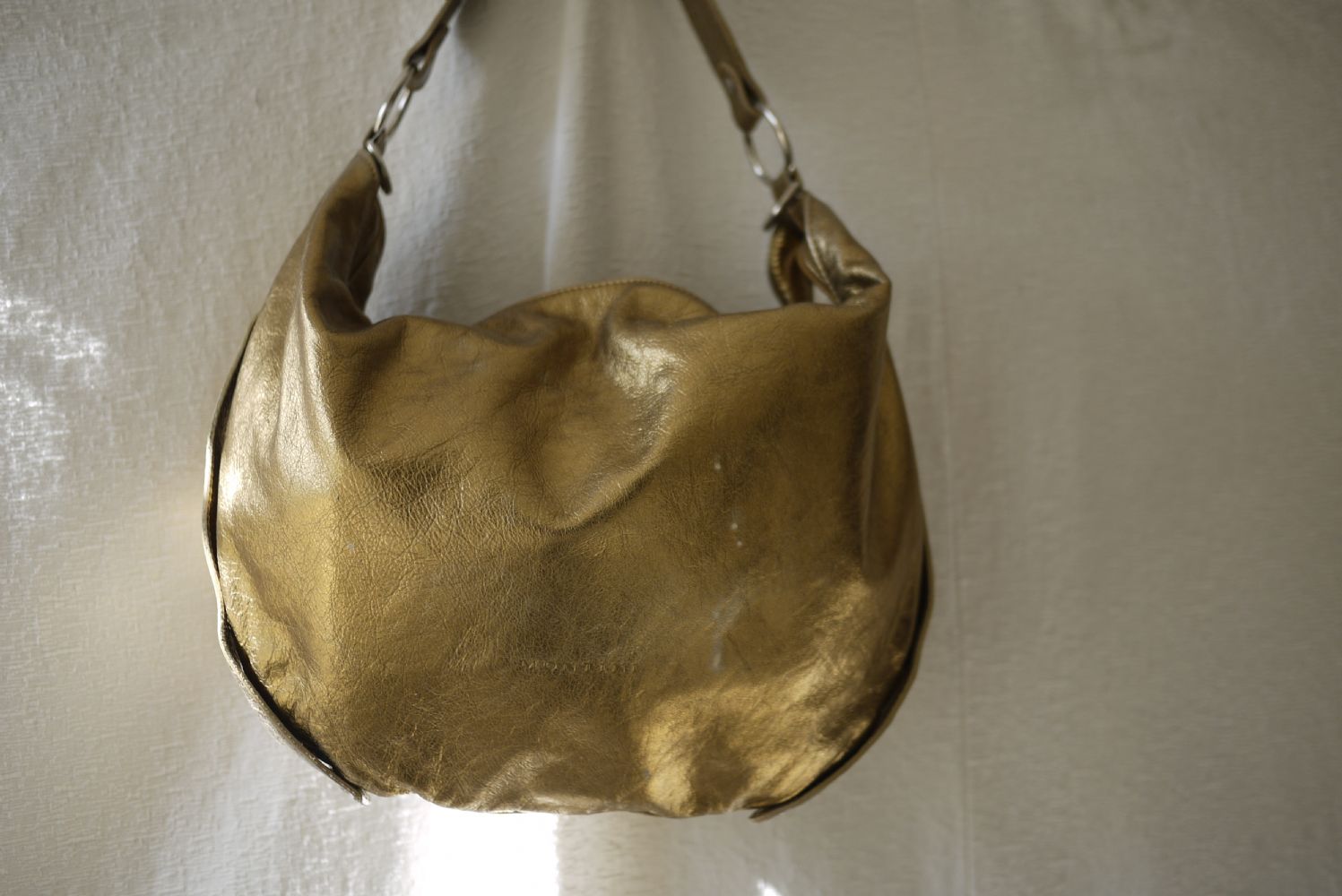 Descrizione:Borsa colore oro, in alcun punti scolorita , quindi per recupero pezzi